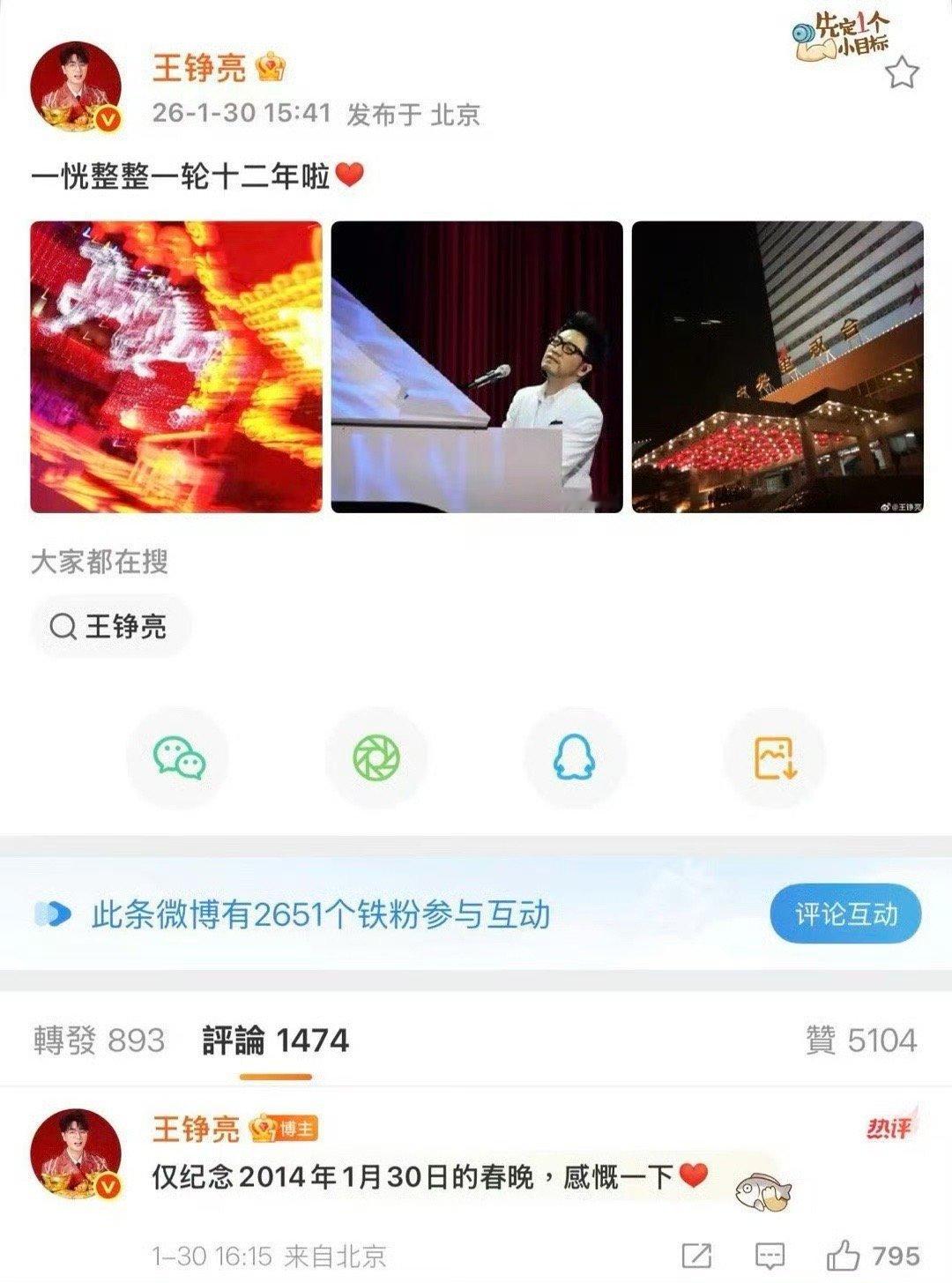 王铮亮上一个马年唱的是时间都去哪儿了 十二年一个轮回,王铮亮与马年春晚的约定再续!从《时间都去哪儿了》到新的舞台,期待亮哥再次用实力唱进每个人心里!