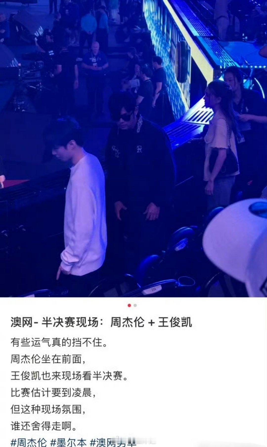 周杰伦带着王俊凯一起看澳网半决赛,真的是追星还得是王俊凯啊,直接跟偶像处成了朋友,还能一起看球赛