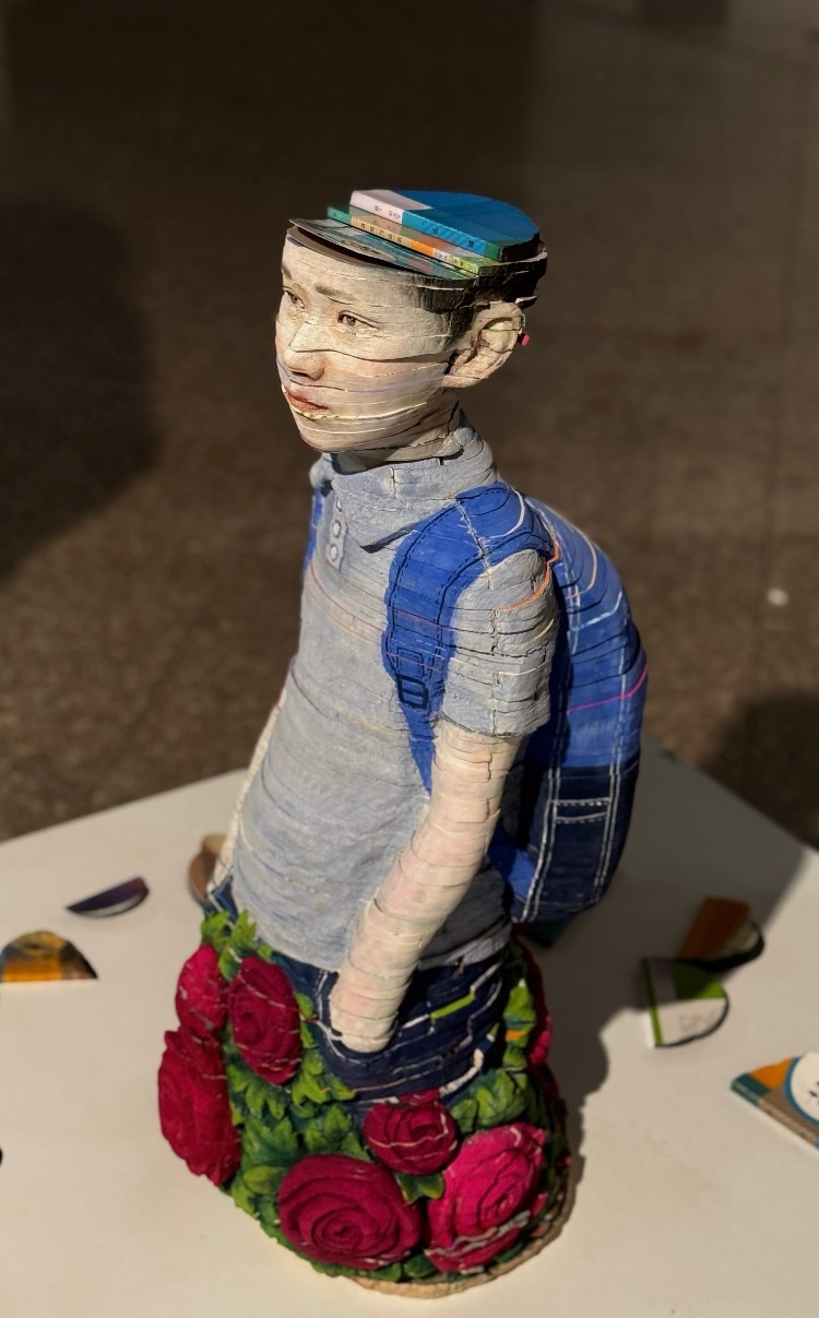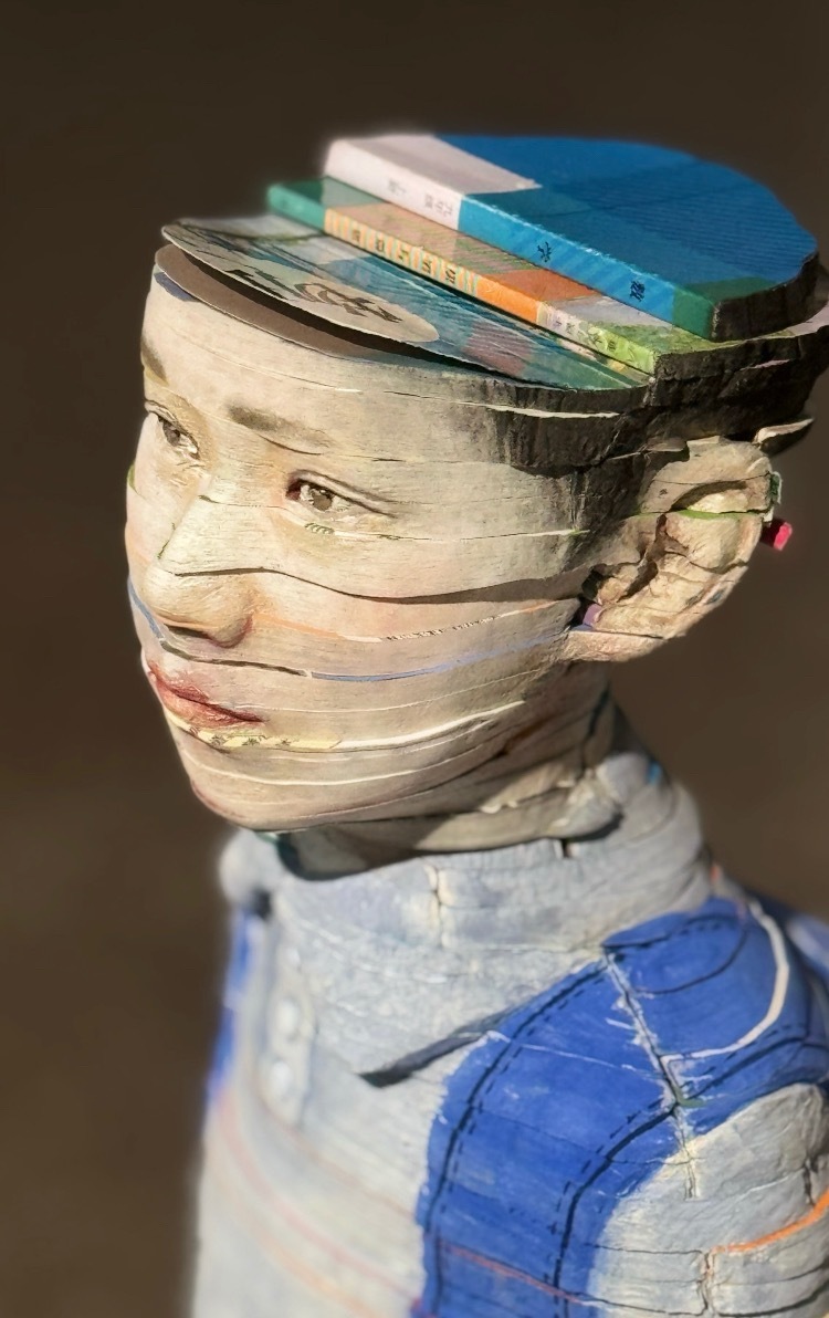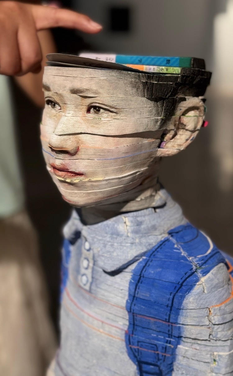 完全由教科书制成的儿童肖像诠释了现实的教育界和个人的塑造儿童教育