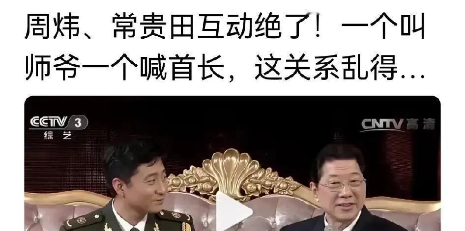 一个敬礼,辈分全乱了? 周炜让师爷常贵田喊自己“首长”,这水到底有多深。 别急着骂。 这事儿,比你想的复杂一百倍。 论相声圈,规矩是铁打的。 周炜,师从姜昆。 姜昆,师从马季。 常贵田老爷子,跟马季是平辈。 按这谱系,周炜见着常贵田,就得毕恭毕敬喊一声“师爷”。 这是江湖道义,是刻在骨子里的辈分。 但,一脱下大褂换上军装,整个逻辑就颠覆了。 周炜,当年是二炮文工团团长。 正师职干部。 说白了,是手握实权的单位领导。 而常贵田呢? 海军文工团的艺术家,军衔同样不低。 但在特定的组织架构里,周炜是“首长”。 于是,后台那一幕出现了。 常贵田一个标准的军礼,一句响亮的“首长! ”。 周炜赶忙回礼。 这不是乱套,这叫双轨并行,是中国人骨子里的顶级智慧。 台上是师徒,台下是首长。 江湖的礼数,单位的规矩,一码归一码。 分的清清楚楚,活的明明白白。 既给了艺术传承最大的尊重,也给了现实秩序绝对的服从。 这种“师爷叫首长”的场面,现在是越来越少了。 不是规矩没了,是那个既认江湖、又认单位的时代,正在悄悄落幕。 能看懂这层味道的,才是真正通透的人。 这比那些酒桌上虚头巴脑的场面话,高级太多了。