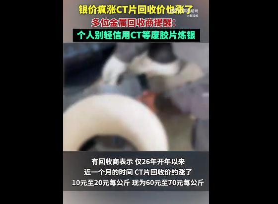 银价上涨,CT废胶片收购价从每斤10元涨到35元! 银价暴涨带动含银CT废胶片回收价暴涨250%,每斤从10元涨至35元。 CT废胶片属HW类危险废物,私自提炼违法且污染严重,曾有夫妻非法提炼白银27余斤、处置危废超百吨,犯污染环境罪被判缓刑并处罚金7万元。 银价一涨,人心就乱! CT废胶片回收价翻三倍,竟成了部分人铤而走险的“淘金路”,私自提炼白银牟利的背后,是对环境的致命践踏,更是对法律的公然挑衅,这种黑心勾当,简直令人发指! 一张小小的CT废胶片,看似是“含银宝藏”,实则是标注为HW感光材料的危险废物,自带毒性,私自提炼绝非“变废为宝”,而是打开了污染环境的潘多拉魔盒,每一分利润里,都浸着生态的血泪。 那些妄图靠提炼胶片白银牟利的人,根本无视私自提炼对环境的毁灭性危害! 不管是传统火烧提炼,还是化学药水萃取,都会产生致命污染:火烧会释放大量含银、重金属的有毒废气,弥漫在空气中,不仅会损害人体呼吸系统,还会形成酸雨腐蚀土壤和植被;化学萃取使用的强酸、强碱等药剂,未经处理直接排放,会严重污染地下水和土壤,导致土壤板结、农作物绝收,地下水丧失饮用价值,周边鱼虾等生物大面积死亡,生态系统彻底失衡。 更可怕的是,这些重金属和有毒物质会长期残留,渗透到食物链中,最终通过食物进入人体,诱发癌症、畸形等严重疾病,对周边居民健康造成不可逆的长期伤害,这种贻害子孙的恶行,比谋财害命更可恶! 此前那对涉案夫妻,无任何资质就敢租赁厂房,处置百吨危废、提炼27余斤白银牟利50多万,他们赚的每一分钱,都是以破坏生态环境为代价的黑心钱。 厂房内堆积的废胶片、提炼后的渣块,全是带毒的危险废物,随意堆放会持续污染周边土壤和水源,即便后期赔偿了生态损失,环境所受的创伤也难以恢复。 最终他们被判刑、罚款、追缴违法所得,纯属罪有应得,这不仅是对他们个人的惩罚,更是对所有妄图触碰环保红线者的严厉警示:环境不是私人牟利的工具,破坏环境,必遭法律严惩! 这些人只盯着眼前的利益,却看不到背后的致命风险:无危险废物经营许可证私自提炼,不仅涉嫌污染环境罪,轻则罚款缓刑,重则牢狱之灾,还需承担巨额生态赔偿,到头来竹篮打水一场空。 而正规回收从业者若守不住“只回收不提炼”的底线,也终将踏入违法深渊,悔之晚矣。 监管部门更需警惕,借这波回收热潮,加大对CT废胶片回收、处置全环节的排查力度,严查无资质回收、私自提炼等违法行为,堵住监管漏洞。 同时必须明确:任何商机都不能凌驾于法律和环保之上,私自提炼CT废片的危害,关乎生态安危、关乎民生健康,绝不能容忍半点纵容。