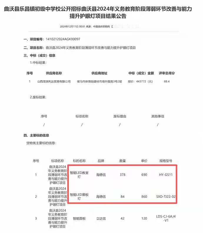 山西有学校七八百元采购的护眼灯,其他区域采购同型号同品牌仅四百来元?县教体局财政