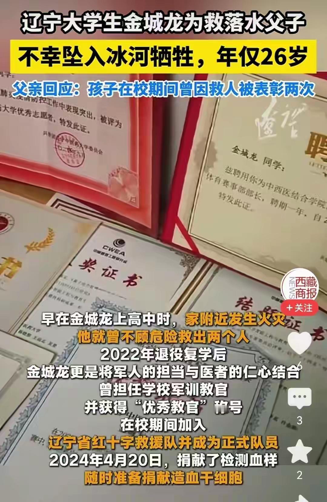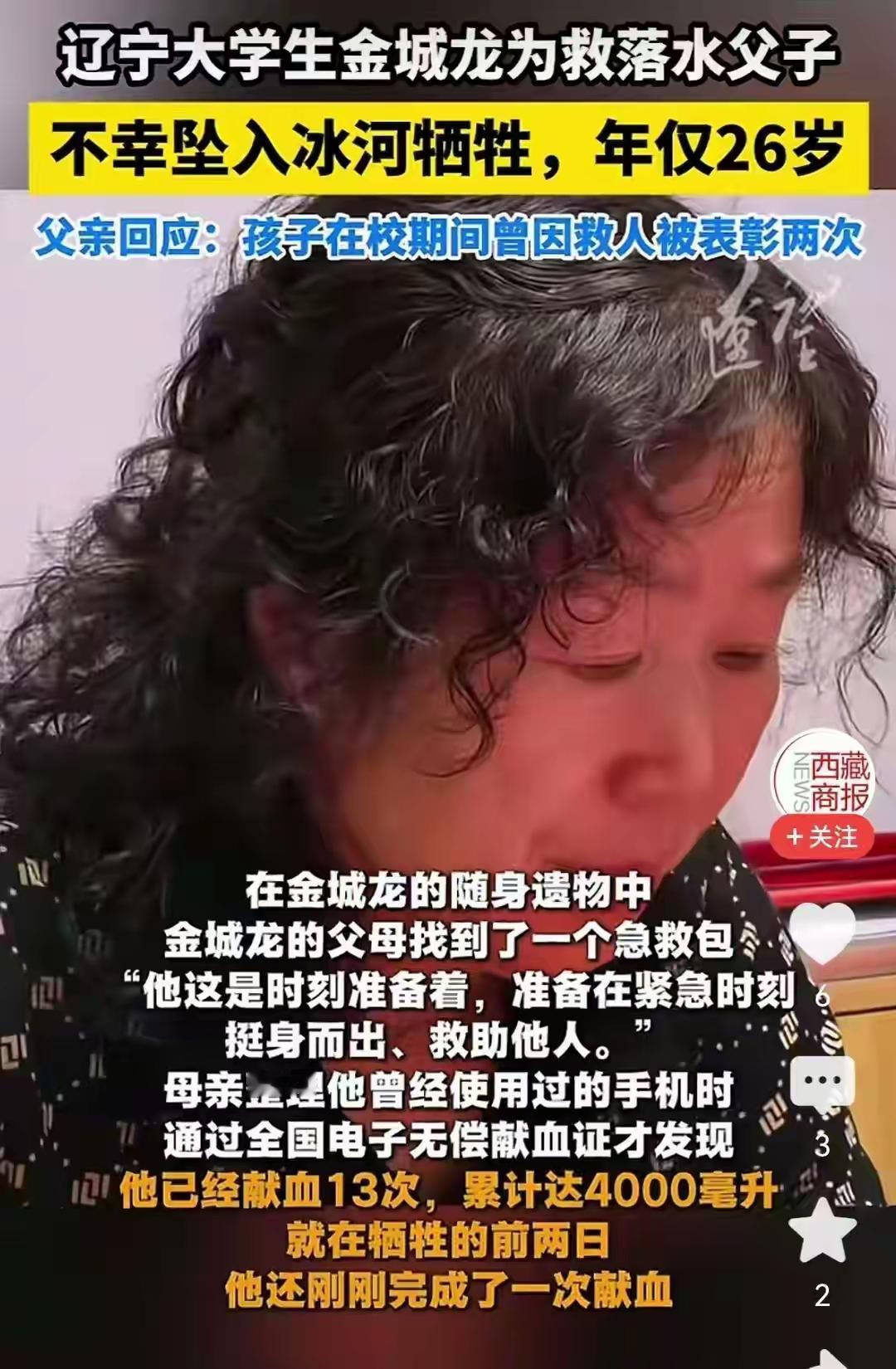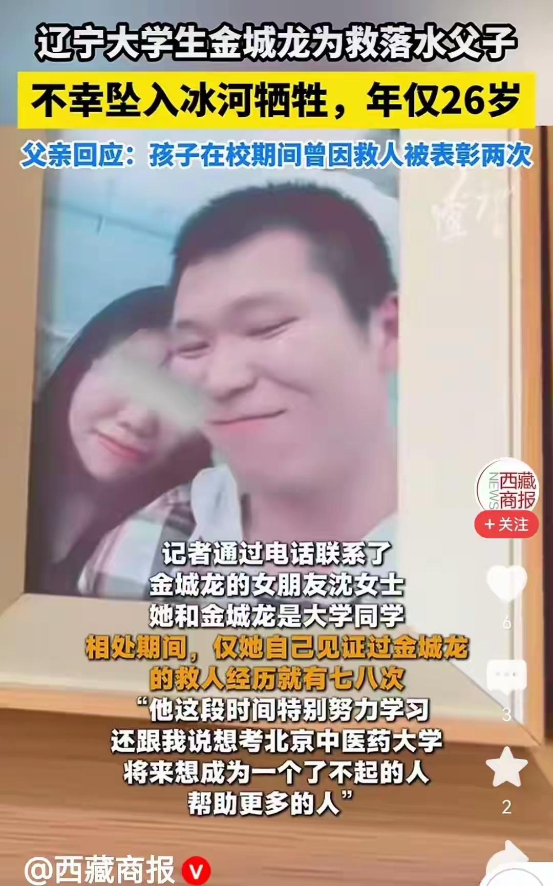 辽宁救人牺牲大学生女友发声:相处期间仅自己见证过其8次救人 在这个快节奏、功利至上的社会里,我们似乎已经习惯了“英雄”的光环只属于那些在镜头前、在新闻里被放大的瞬间。而今天,却有一个不同的故事在悄然发生——一位年轻的大学生,为了救人献出了生命,而他的女友,却在沉痛中发声,揭示了一个鲜为人知的细节:在他们相处的日子里,她只见证过他8次救人。这个数字,似乎微不足道,却折射出一个令人震惊的真相:英雄,或许从未想过自己会成为“英雄”。 “我知道他是个善良的人,但我从未想到他会为了陌生人付出生命。”女友的声音中带着哽咽,却也有一种难以名状的坚韧。她坦言,平日里,他只是一个普通的大学生,学习、生活、偶尔帮帮朋友,没有惊天动地的壮举,只有点点滴滴的善意。然而,正是这些看似平凡的善行,堆砌出了一个伟大的生命。 我们常常以“英雄”定义那些在关键时刻挺身而出的人,但真正的英雄,也许只是那些在生活中坚持善良、默默付出的人。他们没有惊天动地的壮举,只是在日常的点滴中,用行动温暖着这个世界。而这位年轻的大学生,或许只是一个普通到不能再普通的年轻人,但他用生命证明了:善良,从未过时。 他的女友说:“我希望人们记住他的善良,而不是他最后的牺牲。”这句话,像一股清流,冲破了喧嚣与浮躁,直击人心。我们在感叹英雄的伟大时,是否也应该反思:我们每个人,都有成为他人生命中的“英雄”的潜力?那一份善意,也许只是一句问候、一份帮助,甚至是一点点勇气。 这个故事,让我们看到了人性的光辉,也让我们思考:在这个充满挑战的时代,善良依然是最坚不可摧的力量。我们是否也能在平凡中,坚守那份善良?是否也能在日常中,成为他人生命中的那束光?或许,英雄并不遥远,就藏在我们身边的每一个微小的善举中。 让我们用心去感受,用行动去传递,让这个世界因为我们的善良而变得更加温暖。因为,真正的英雄,从不需要华丽的外衣,他们只需要一颗善良的心。