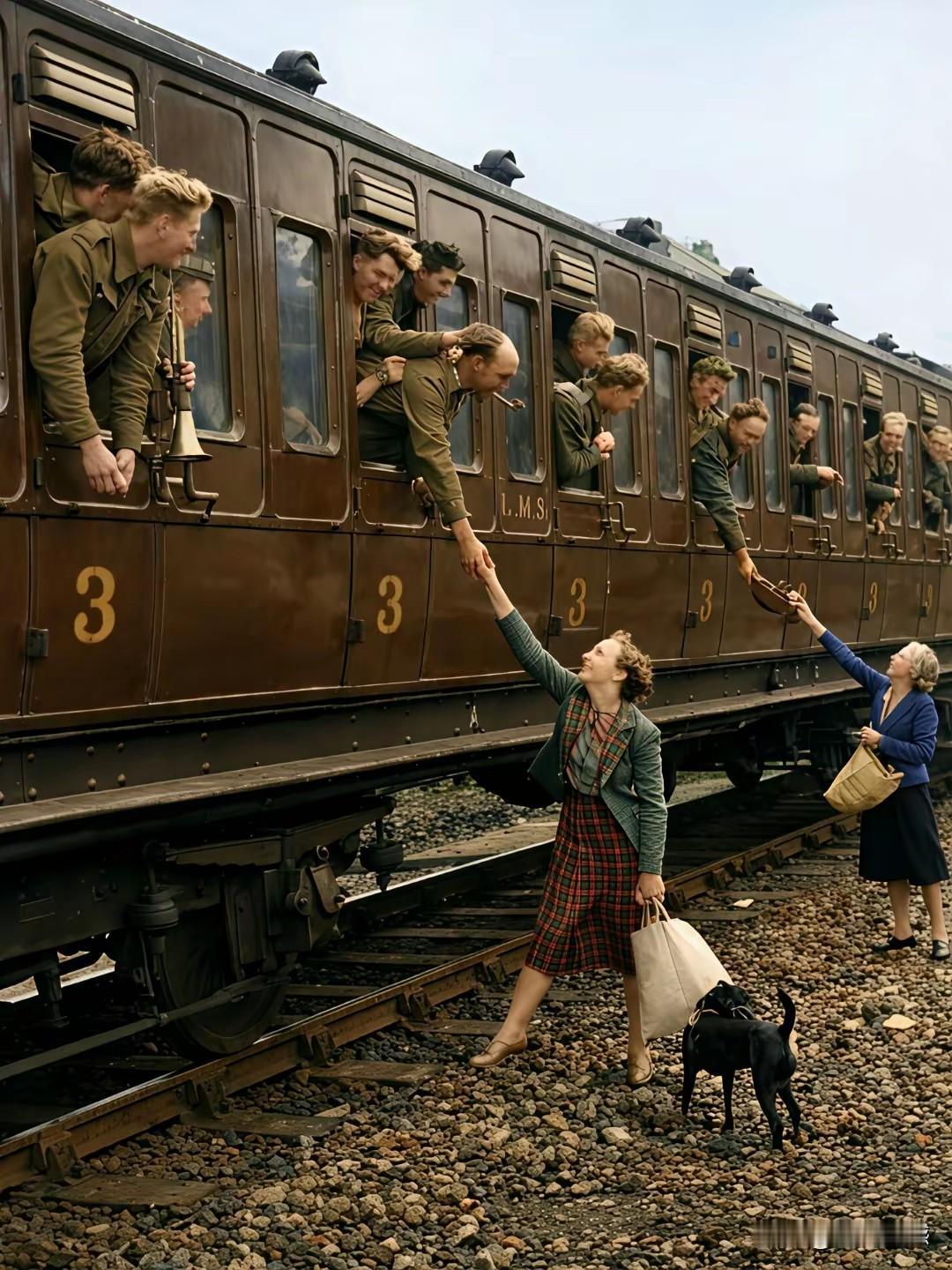 远征的英雄凯旋归来,女子们在车站迎接他们,与他们握手,为他们送上物品,这虽然是80年前的画面,而且是发生在伦敦的画面,但是今天看起来,依然还是那样的温馨,依然还是那样的感动,任何国家,任何人,都应该对保家卫国的英雄们致以最高的礼敬!