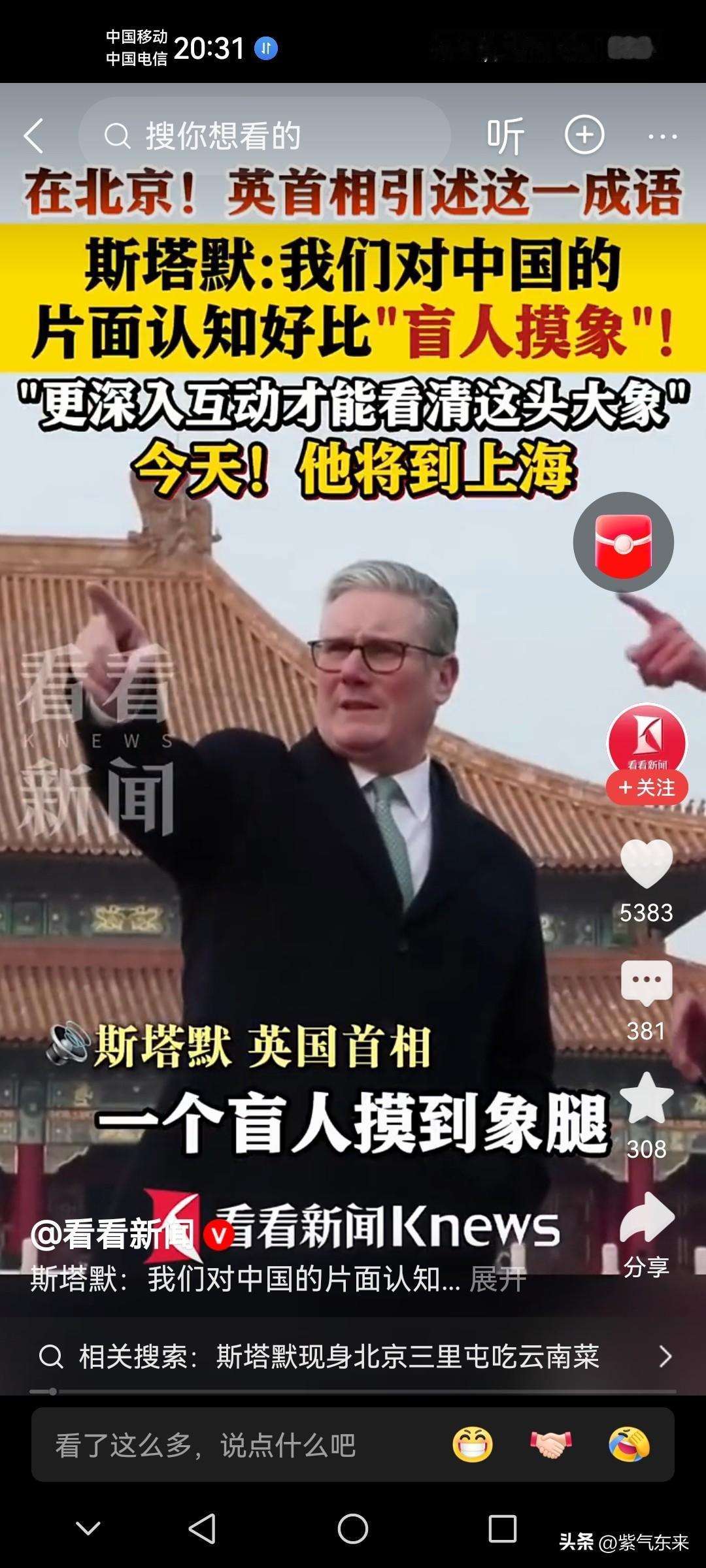 不难看出,西方国家对中国的认知还停留在中国贫困落后的时代! 就连老牌的大英帝国首相斯塔默都说:我们对中国的片面认知还停留在“盲人摸象”! 中国欢迎西方国家来旅游来投资来交流,但是西方国家高傲自大,再加上媒体的不断渲染和抹黑,导致西方国家的人民还以为中国很落后! 要怪只能怪西方国家固不自封! 中国发展的越来越好越来越强大,西方国家就极力抹黑,中国一旦贫困落后,西方国家就添油加醋,幸灾乐祸! 典型的西方主义! 西方国家在上个世纪的到处的侵略和掠夺,直到现在西方开始力不从心,但仍不愿意放低姿态来重新审视亚洲的强国中国! 这次英国首相斯塔默没有白来!中国给他上了深动一课!老外热议中国 老外评价中国人 外媒点评中国 外国评论中国 中国发达程度 老外看中国文化 国外媒体看中国
