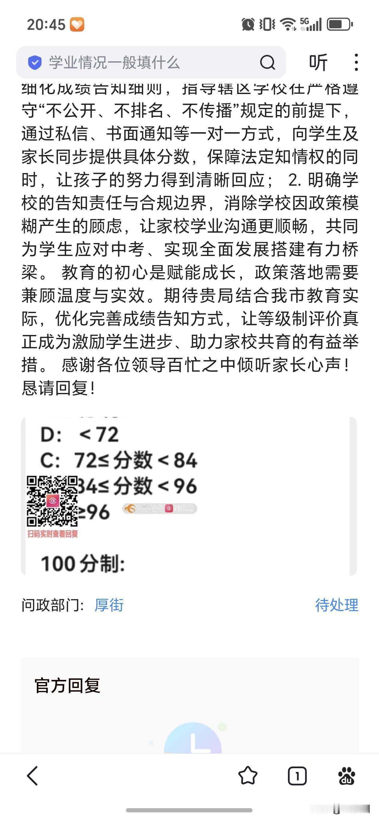 刚看到我们学校同学的家长也在网上投诉了,要求教育局告知家长孩子的分数,希望能公布分数吧,不然抓瞎,学了一个学期,到底学得怎么样都不知道,这学还有必要上吗?