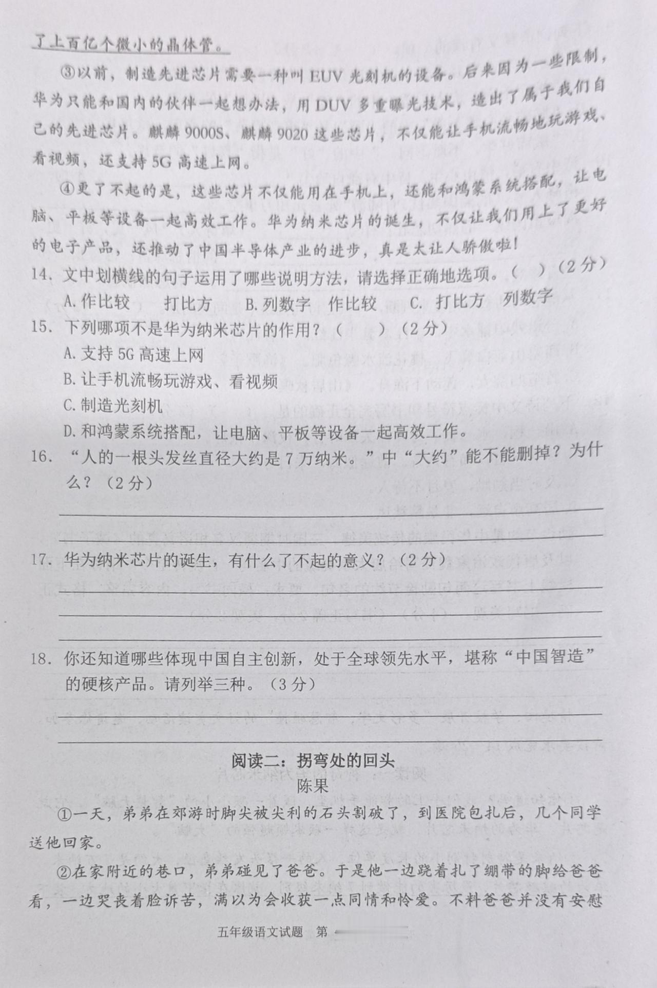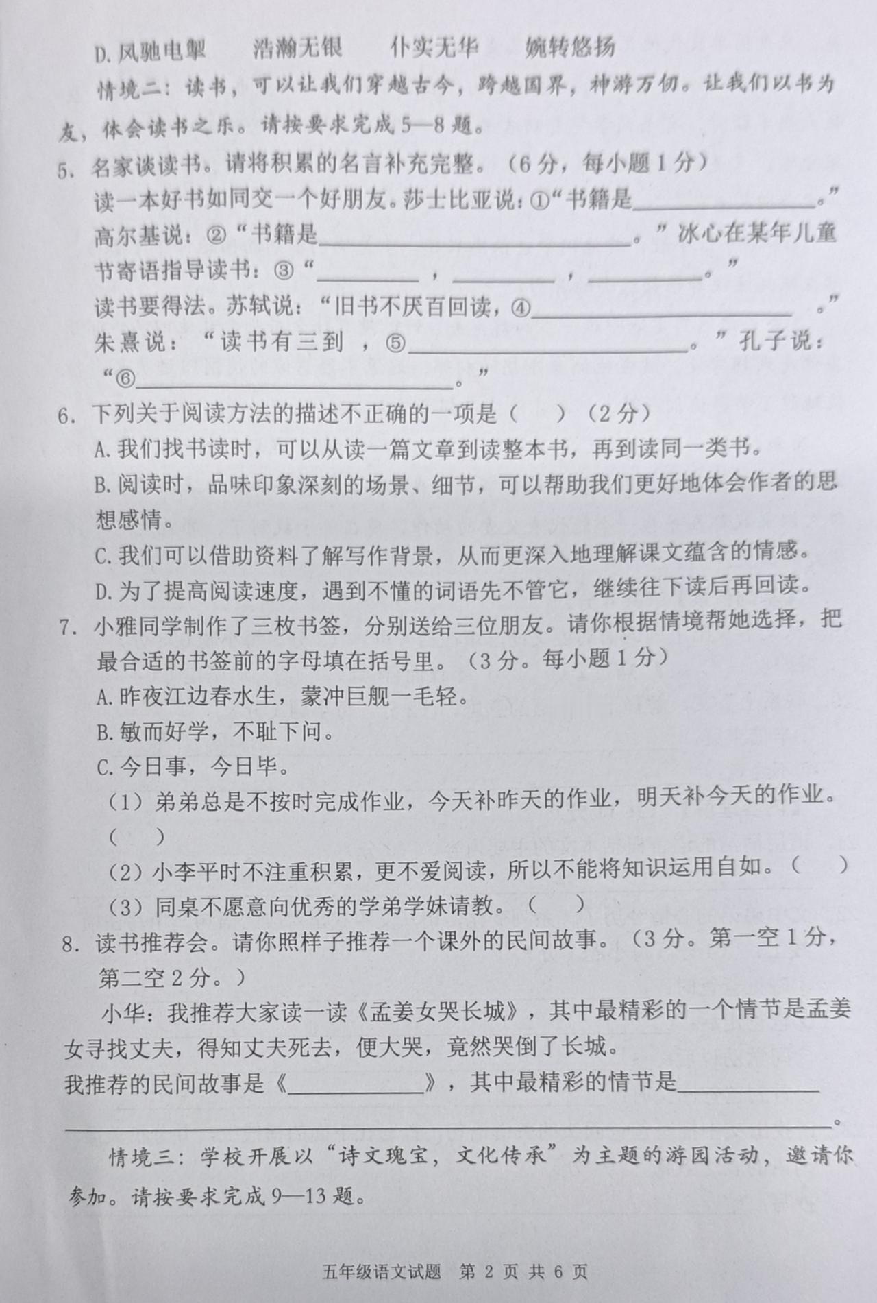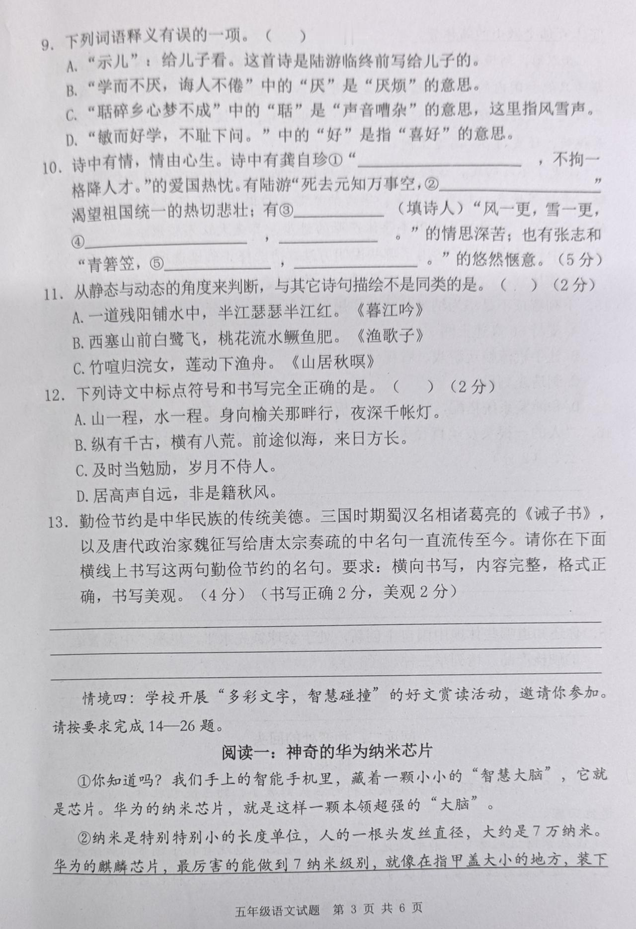 2025—2026学年度上学期期末学业水平质量监测五年级语文试题