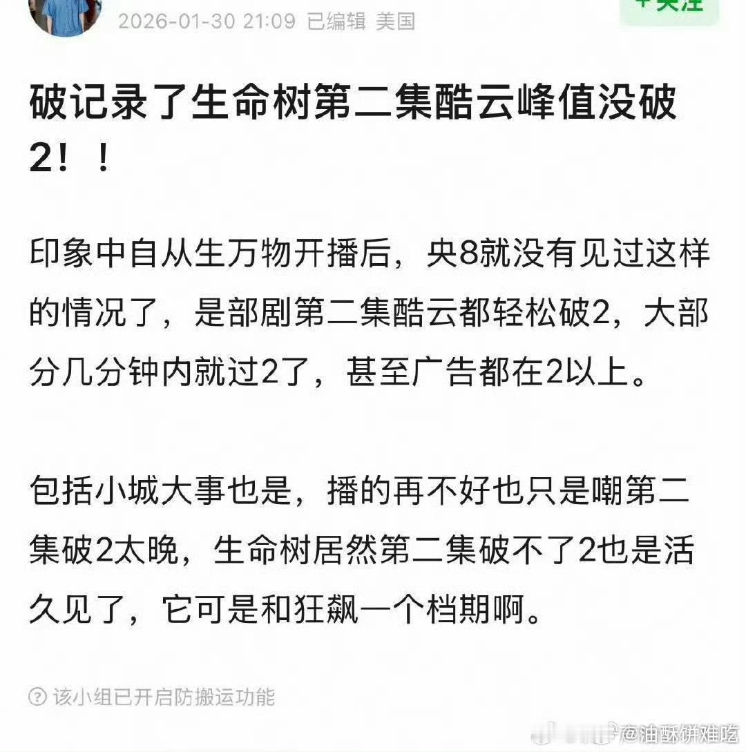 生命树首播反馈口碑不太好啊,大部分都是吐槽,收视率表现也很差,甚至不如一直被吐槽的小城大事