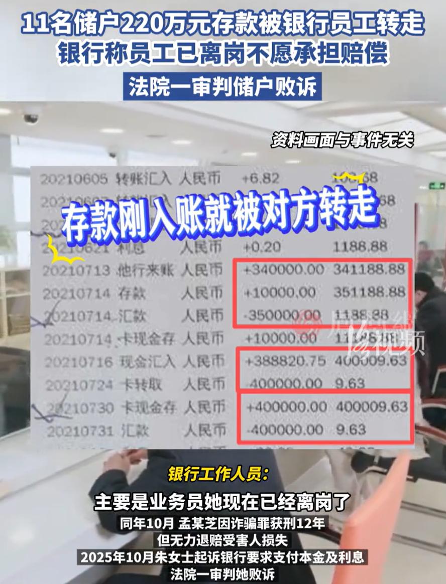 “这是一辈子血汗钱!”内蒙古扎兰屯,一女子拿着75万到银行存款,柜员却借机推销“高息存款”把钱存到自己账下,后来女子发现不对劲,报警后柜员被判刑,但钱却拿不出来了,女子认为银行有责任,可法院一审却判储户败诉 这个事要从2021年开始追溯,当时朱女士揣着积攒半辈子的75万元走进银行,本想安安稳稳存个定期,谁知这一去,钱竟没了踪影 接待她的是柜员孟某芝。办理业务时,孟某芝神秘兮兮地提到,银行有“内部高息存款”,利息比普通存款高不少,就是名额有限。朱女士一听动了心,想着钱放在银行,又是柜员亲口说的,还能有假? 她万万没想到,孟某芝在柜台里边操作时,手指在键盘上敲了几下,钱并没有进入她的存款账户,而是转到了孟某芝自己的名下。一张打印出来的“存款凭证”递到朱女士手里,看上去一切正常 直到后来需要用钱,朱女士才发现账户里根本没有那笔存款。慌忙去银行询问,才得知孟某芝早已不在岗。她赶紧报警,一查才知道,被同样手法欺骗的储户,竟有11人之多,朱女士是其中金额最大的一户 警方很快将孟某芝抓获。2025年,法院以诈骗罪判处孟某芝有期徒刑12年。可最现实的问题摆在眼前:钱呢?孟某芝早已将骗来的钱挥霍一空,无力退赔 朱女士和其他受害者一起找到银行,想要个说法。他们认为,事情发生在银行柜台,员工穿着工服、利用职务身份行骗,银行怎能完全撇清关系? 但银行方面的态度很明确:孟某芝是个人犯罪行为,且已经离岗失联,与银行无关,损失应当由犯罪者本人承担,银行不负责赔偿 更让朱女士等人难以接受的是,法院一审判决支持了银行的立场,驳回了储户的全部诉讼请求,认定银行无需承担赔偿责任。目前,他们已提起上诉,二审尚未宣判 这件事之所以引发这么多共鸣,不只是因为金额大,而是它戳中了很多人的安全感。普通人对银行的信任,本质上不是信某一个柜员,而是信整套体系。柜台、制服、系统、印章,这些东西在一起,就代表着安全。如果这些元素可以被个人轻易利用,而风险最终全部压在储户身上,那对普通人来说,几乎是防不胜防 从法律角度看,法院强调的是证据和行为性质,柜员是否超越职务权限,银行是否存在管理过失,这些都需要严格界定。可从现实角度看,一个普通储户,几乎不可能分辨什么是职务行为,什么是个人犯罪。你站在银行柜台前,很难有第二种判断标准 这75万到底还能不能追回,目前没人敢下结论。二审结果如何,也会影响类似案件的走向。很多人关心的,其实不只是朱女士一个人的输赢,而是以后我们把钱交到银行时,心里还能不能踏实 钱可以慢慢赚,信任一旦被消耗,修复起来很难。希望这类案件,不只是判完就算,而是真正推动制度补漏,让普通人不用在银行柜台前提心吊胆。对很多人来说,这不是法条问题,是安全感问题