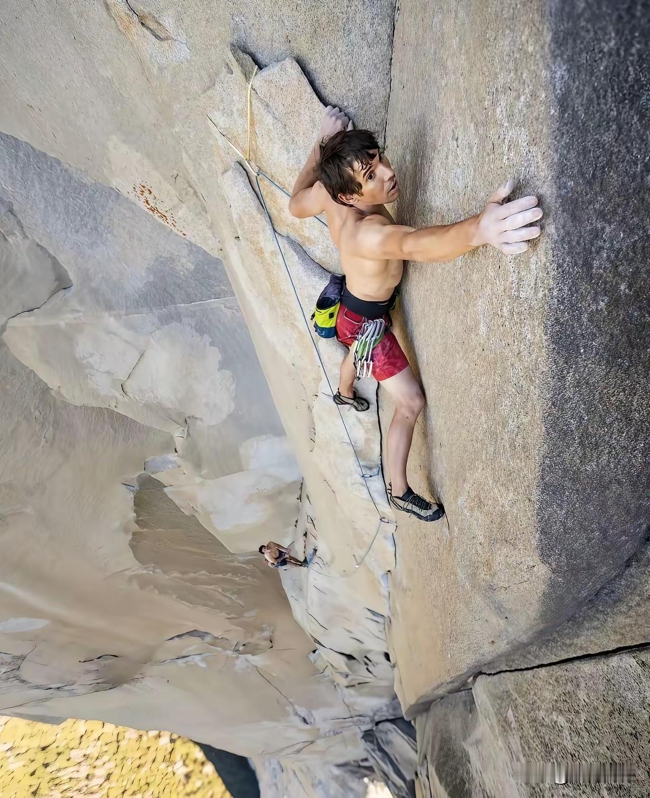 亚历克斯平时是怎么训练的?看他训练时所爬的这个岩石,本身就是一个90度的直角,上面基本上没有多少能抓的东西,也没有多少能踩的东西,他的勇气和胆量也太大了,这个人大大概就是为了攀岩而生的,据说他在五岁的时候,就开始迷上了攀岩,1985年出生的他,现在已经41岁了,依然还是如此热爱,攀岩已经融入了他的生活,融入了他的生命,是他生活的一部分,是他生命的一部分!