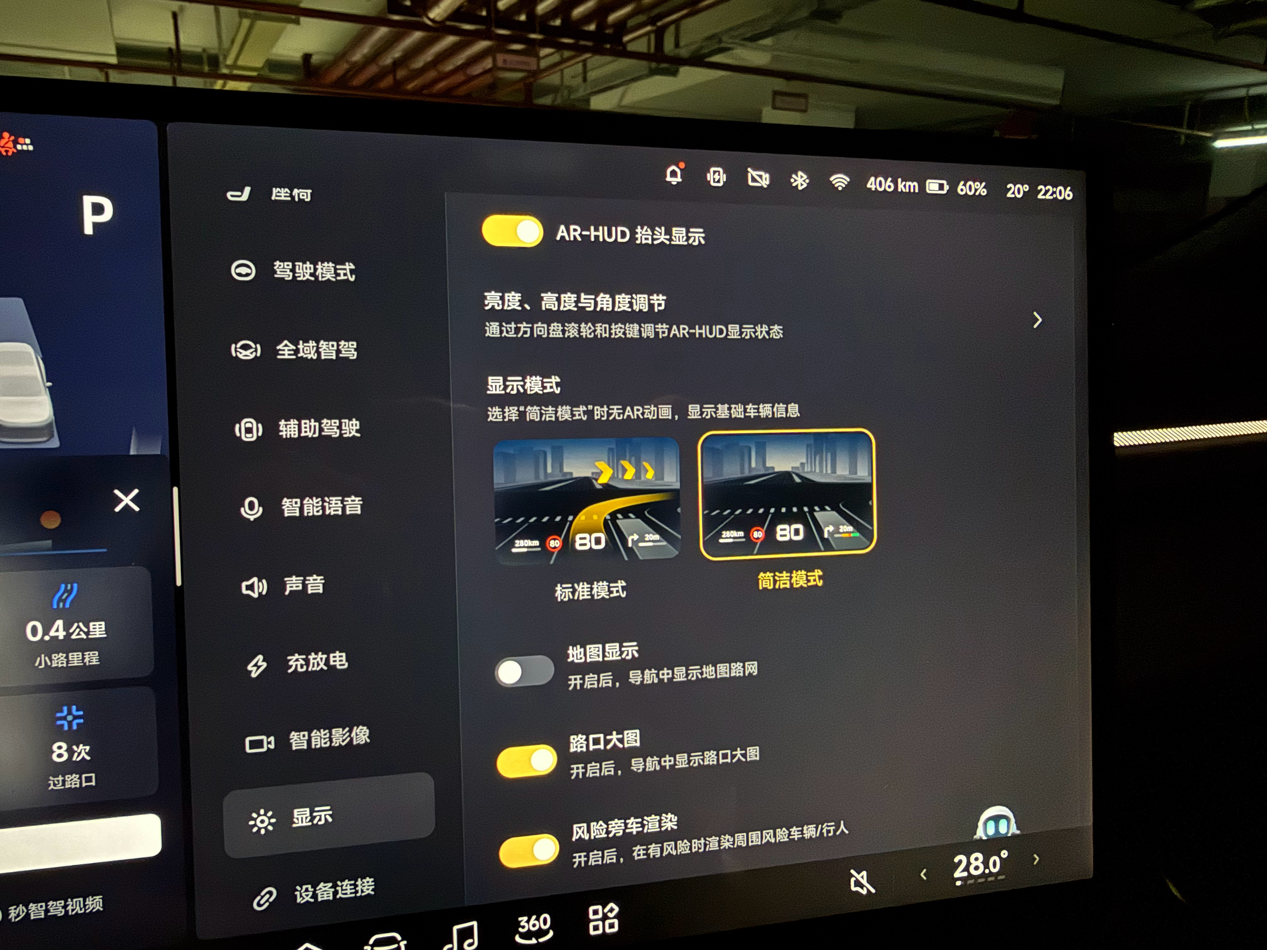 就只留下一行最核心的( 诸如速度、智驾状态等等)信息,清爽且信息传递高效!