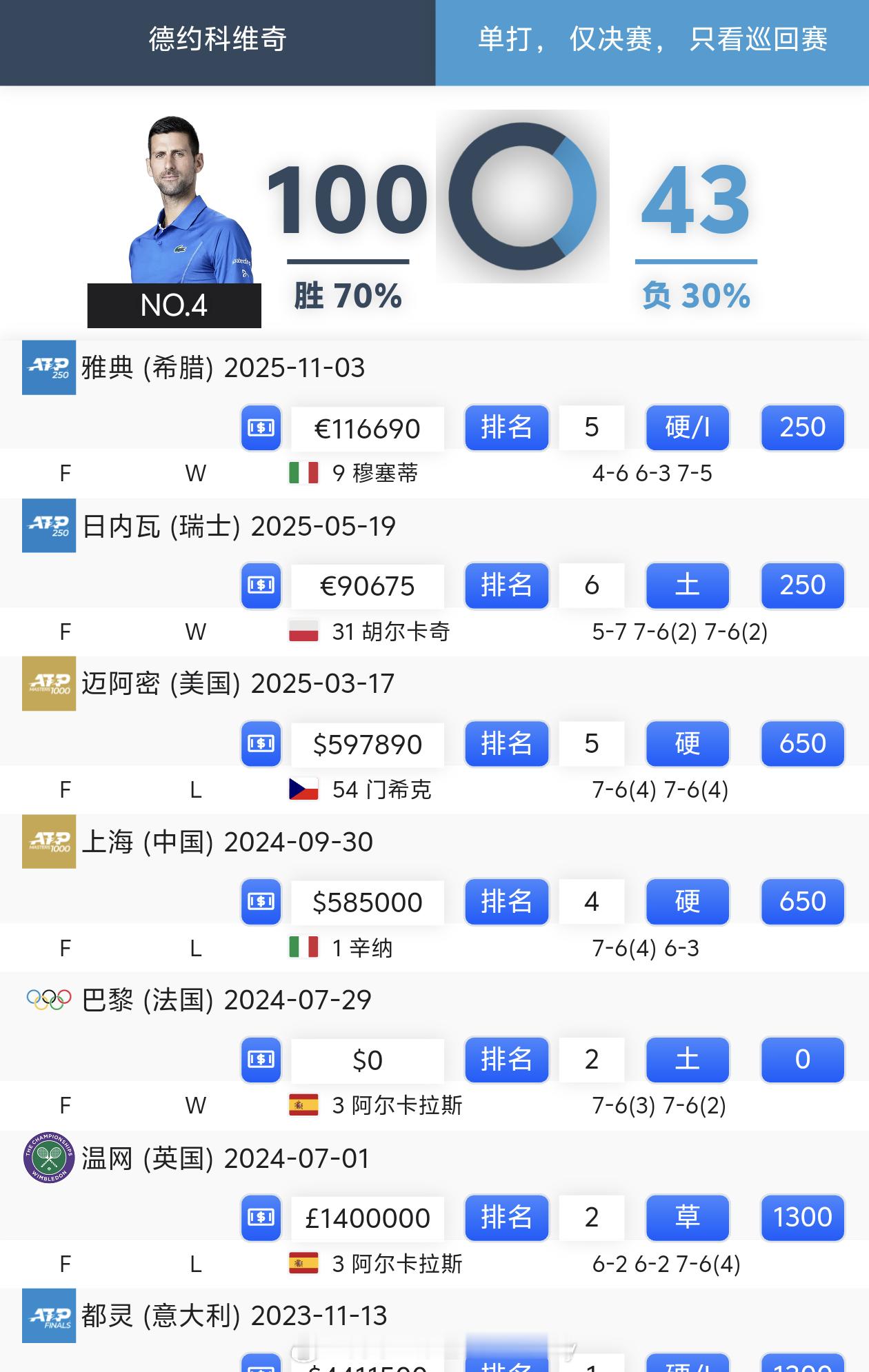 这是德约科维奇的1️⃣4️⃣4️⃣个决赛