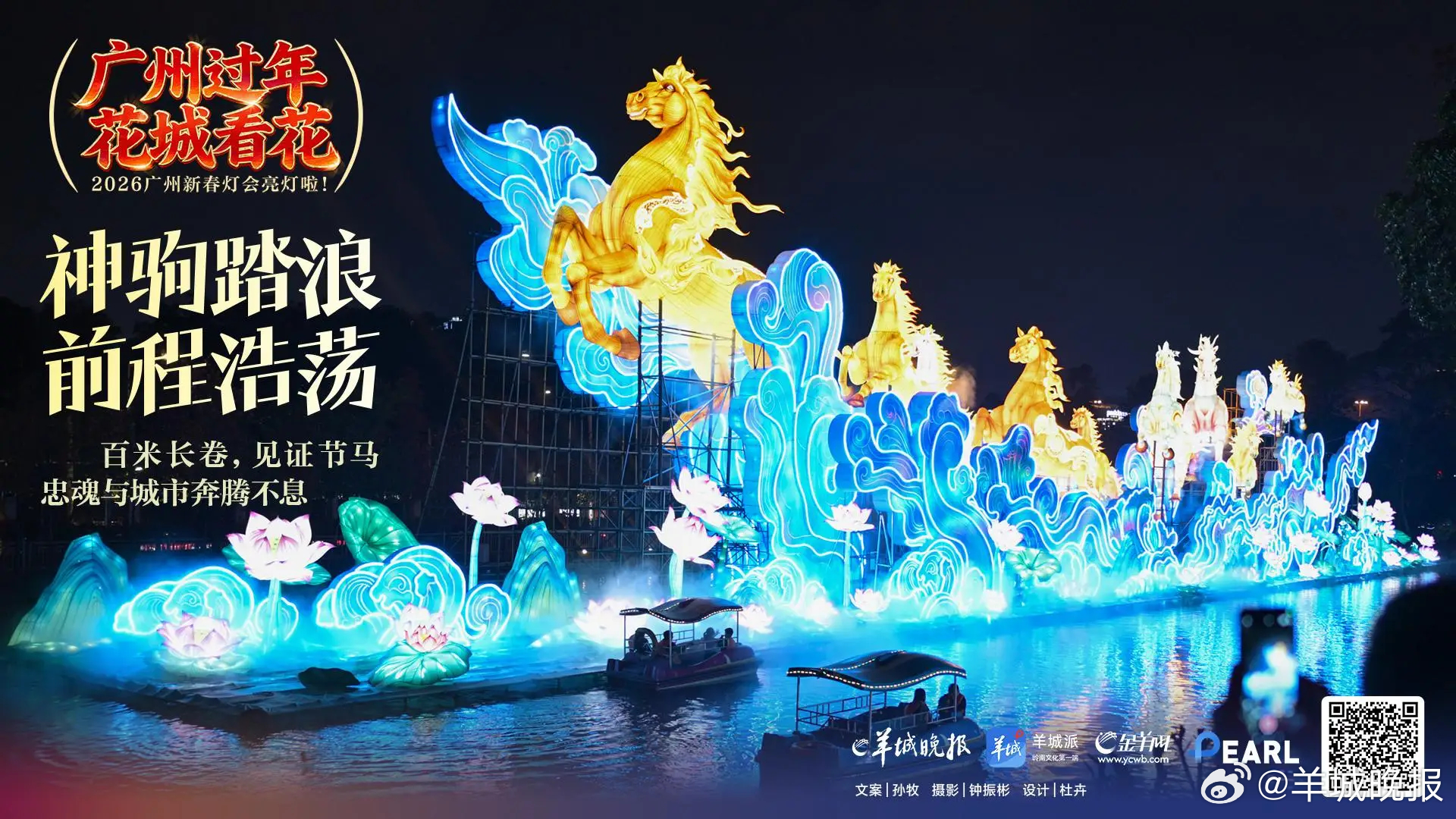 【#广州新春灯会璀璨上线#,快快来接住你的新年鸿运】1月30日,“粤韵千年·四海同心”2026广州新春灯会已在越秀公园华彩点亮。高达20米的“醒狮”昂首迎福,百米“骏马”踏浪追光,金灿灿的“年桔”聚宝盆寓意大吉大利……85组主题灯组融汇非遗匠心与科技光影,将美好新年祝愿化作璀璨实景。即日起至3月8日,不妨步入这场千年一瞬的光影画卷,接鸿运、纳吉祥,在流光溢彩中共祈家国昌盛、四海同春!([原创]记者:孙牧、钟振彬、杜卉;编辑:郑宗敏;审签:谢杨柳)