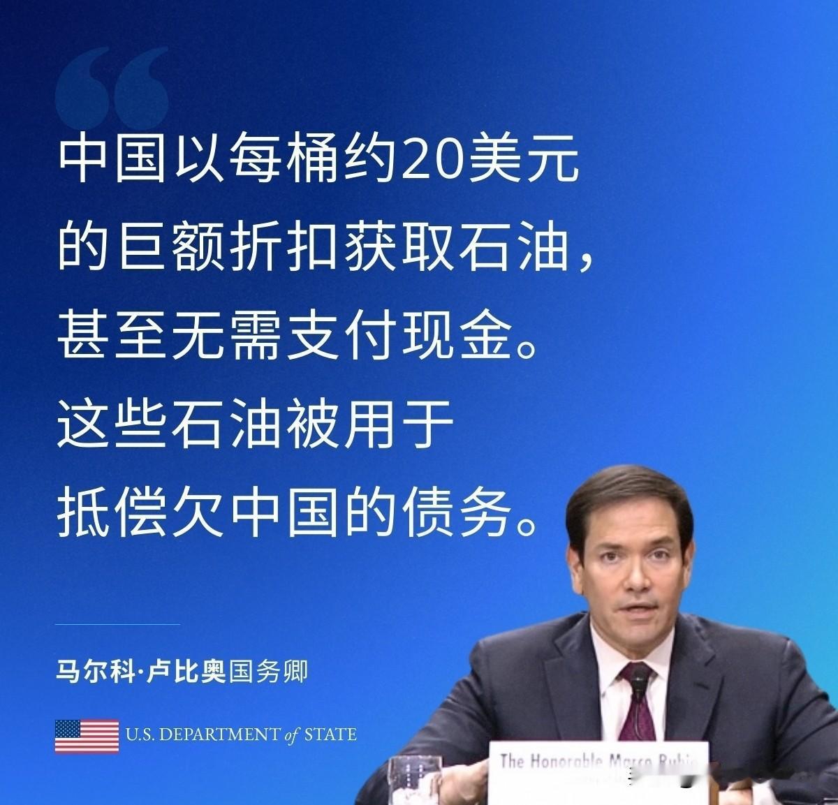 鲁比奥公开点了我们的名!1月31日,鲁比奥声称,中国,它以每桶约20美元的巨额折扣获取石油,甚至无需支付现金。这些石油被用于抵偿欠中国的债务。这是委内瑞拉人民的石油,却以每桶20美元的折扣价——某些情况下甚至低于成本价——以易货方式拱手让予中国。由此可见,我们的全球三大主要对手正从西半球的这片土地上展开行动。 很显然,鲁比奥话里话外的意思,就是明显针对我们。不过,鲁比奥的讲话非常的荒谬。其一,鲁比奥自己也承认这是委内瑞拉的石油,那请问委内瑞拉卖石油给我们,跟美国有什么关系?难道委内瑞拉卖石油还需要美国同意吗?其二,所谓的20美元折扣,低于成本价,更是张嘴就来的胡说八道。 委内瑞拉石油是重油,受制裁和市场影响,2026年初对华抵债价约38-45美元/桶,远高于其直接开采成本(22美元左右),这是哪门子的低于成本销售呢?其三,在与委内瑞拉的合作中,我们对委内瑞拉有贷款,建基建,何来委内瑞拉拱手让予中国一说?鲁比奥一番讲话,俨然把美国打扮成委内瑞拉利益的捍卫者,但是美国干的是什么勾当呢? 美国悍然入侵委内瑞拉,妄图控制委内瑞拉的石油资源,其所作所为与强盗无异。现在更是再次以武力威胁罗德里格斯,要求其配合美国,如此强取豪夺,美国有什么资格批评我们与委内瑞拉建立在平等之上的互利合作呢?很显然,美国绝不是委内瑞拉利益的捍卫者,美国的嘴脸各国都看的清楚。