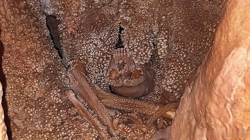 研究团队推测,这名男子可能是不慎跌入约10米深的塌陷洞穴,随后被困在狭窄通道尽头,在无法脱身的情况下因饥渴而死亡。此后,随着地质变化与矿物沉积,他的骨骼逐渐与洞壁“融合”,形成如今令人震撼的景象。
