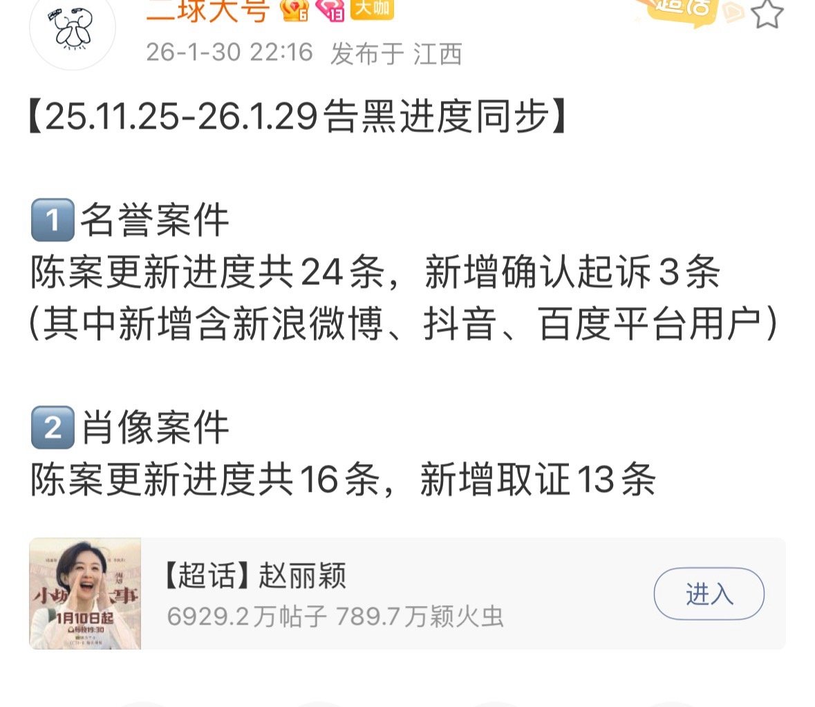 赵丽颖发布告黑进度,全平台取证,告了好多人,网络不是法外之地,支持赵丽颖维权!