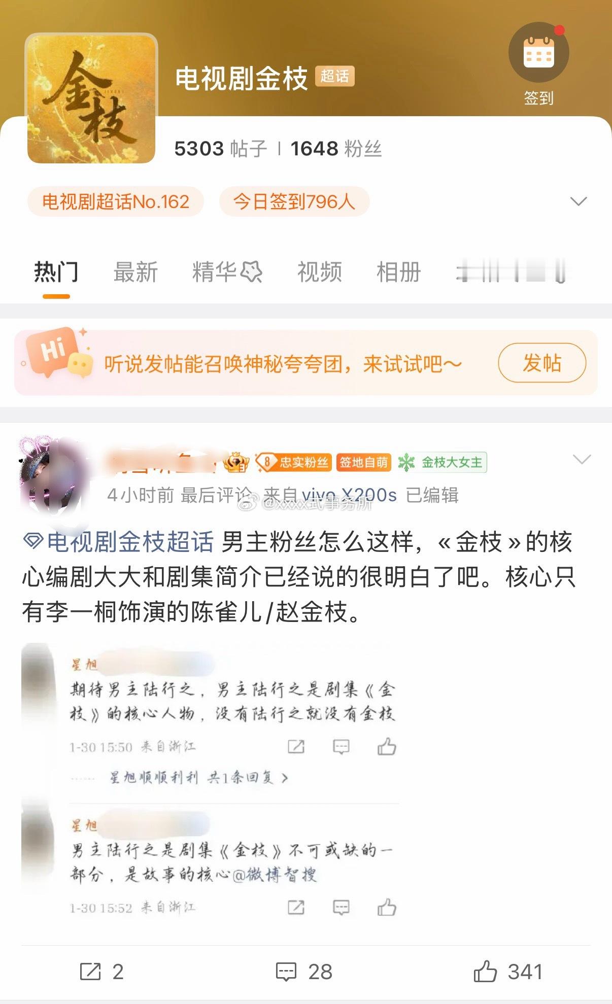 金枝怎么也开了两个超话,李一桐陈星旭家各一个