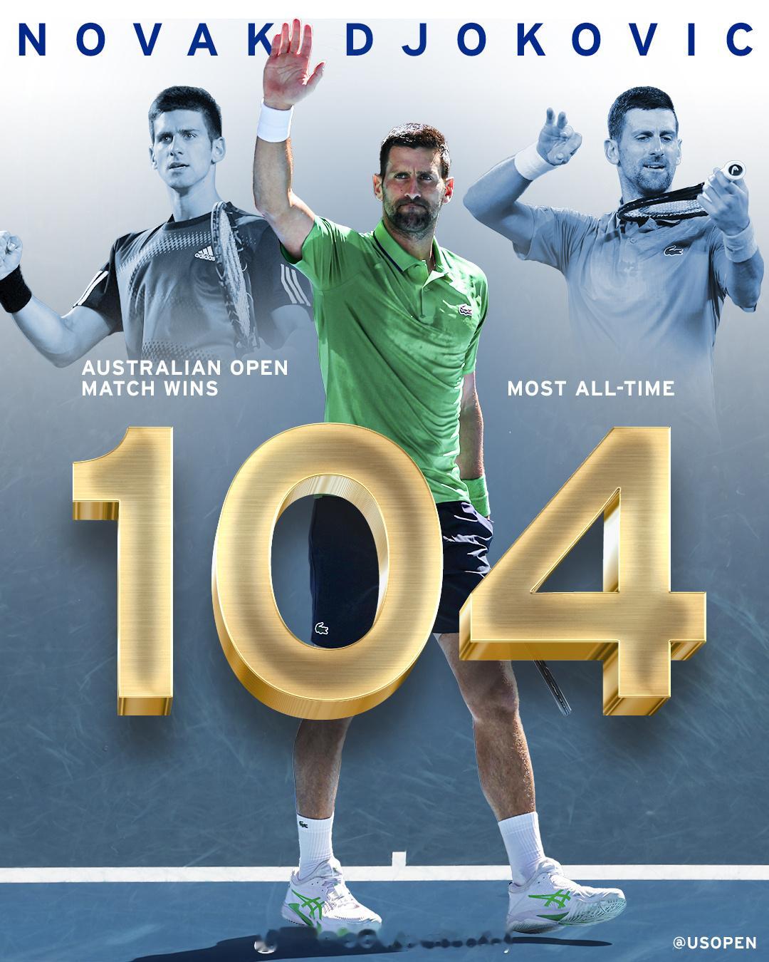 这是德约科维奇在澳网获得第104场胜利✌🏻