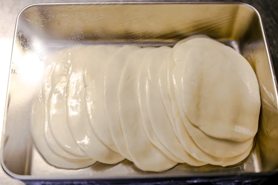 热气腾腾的三餐 笔记灵感 高筋面粉500克,加入13克食盐,240左右的清水(根据春夏秋冬不同季节选择温水和凉水),少量多次加入面粉中,揉成面团。醒10分钟。再次揉搓面团,醒面10分钟。之后揉成长条,分成大约100克左右的小剂子,刷上食用油,擀成长15厘米,宽10厘米左右的面片,刷上食用油,盖上保鲜膜,醒面40分钟。