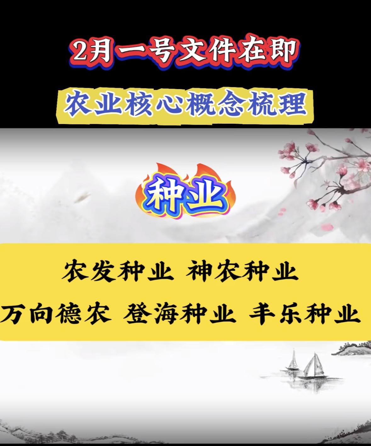 2月一号文件公布在即,农业股核心概念梳理 "农业政策利好将至,粮食安全受关注,黑芝麻、万向德农等概念股或迎机遇。" 农业政策利好将至,粮食安全受关注,黑芝麻、中粮等概念股或迎机遇。