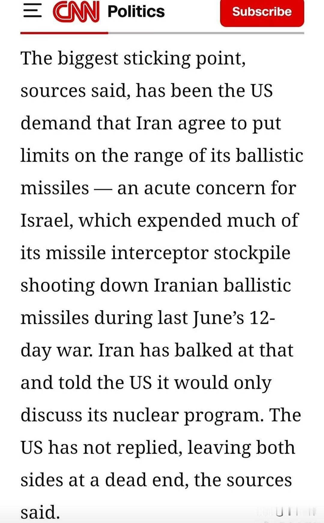 美国外交的幼稚: 据报,美国要求伊朗把弹道导弹射程“砍短”,理由是“以色列感到不安”——毕竟以方在自找的12天战争里被揍得够惨。 可以色列不仅一枚导弹不少,连核弹也要继续握着。 华盛顿的意思是:以色列可把“达摩克利斯之剑”永远悬在伊朗头上,而伊朗得主动废了自己唯一的威慑。 特朗普政府当真指望伊朗举手投降,让自己对去年刚袭击过伊朗本土的两个国家毫无还手之力。 有本事你就灭了伊朗的导弹能力。 没本事你就继续这样徒劳叫嚣。