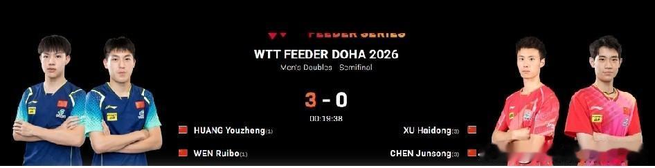 WTT支线赛多哈站的比拼当中,尽管球迷非常期待打出好成绩的温瑞博,在男单首轮当中就遭遇意外出局,让他近期在世界乒乓球单打赛场上的好状态戛然而止,但他在双打比拼当中还是表现出了不错的竞技状态,和队友黄友政也是一路过关斩将,并在男单半决赛当中,3:0完胜队友徐海东和陈俊菘的组合,直接晋级决赛。双方三局的具体比分是11:8,11:4和11:8。 用某些球迷的话说就是温瑞博现在展现出来的竞争力,可能还让他在比赛稳定性方面让我们不是十分满意,但是东方不亮西方亮,单打赛场意外出局,双打赛场也可以走的更远,或者双打赛场出现问题,单打赛场能顶住压力,有所建树,这也是温瑞博这种年轻尖子球员必须经历的一个阶段。在这个阶段就是需要他们学会忘记前面其他比赛的输赢让自己可以在后面的其他比赛中继续闪光。哪怕某一个赛场上或者某一站比赛中成绩不佳,到另一个赛场或者另一项比拼当中也要继续展现自己的综合能力,不能让自己总是去沉浸在某个具体场次的胜负当中。 而他们只有走过这一步,还能继续把稳定性再提升一个台阶,才能让自己实现跨越式的进步并力争早日进入国乒核心主力层。 另一场男双半决赛,则是国乒球员徐瑛彬和袁励岑与日本组合吉山和希与吉天僚一之间的竞争。最终国乒组合也是以3:2的总比分,五局险胜对手,锁定一场艰难的胜利,同时占据一个最终的争冠席位,双方五局具体比分11:8、3:11、11:7、7:11和12:10,这也确保了在这次支线赛上男双冠军提前被两对国乒球员锁定。让我们再次恭喜袁励岑徐瑛彬组合以及黄友政和温瑞博组合。期待男双决赛精彩上演!