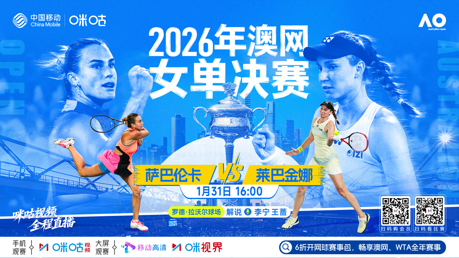 #上咪咕看澳网#女单决赛🎾 双“巴”大战,一触即发!⏰ 1月31日16:00起 咪咕视频直播网页链接#莱巴金娜萨巴伦卡争冠#