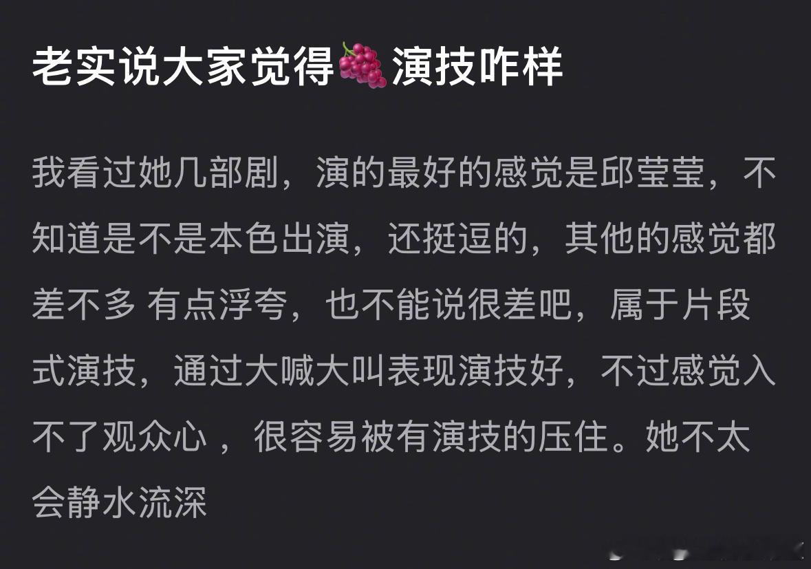 她就是邱莹莹本人,只要演邱莹莹类型的角色就能很好,演别的角色就非常不能入戏。