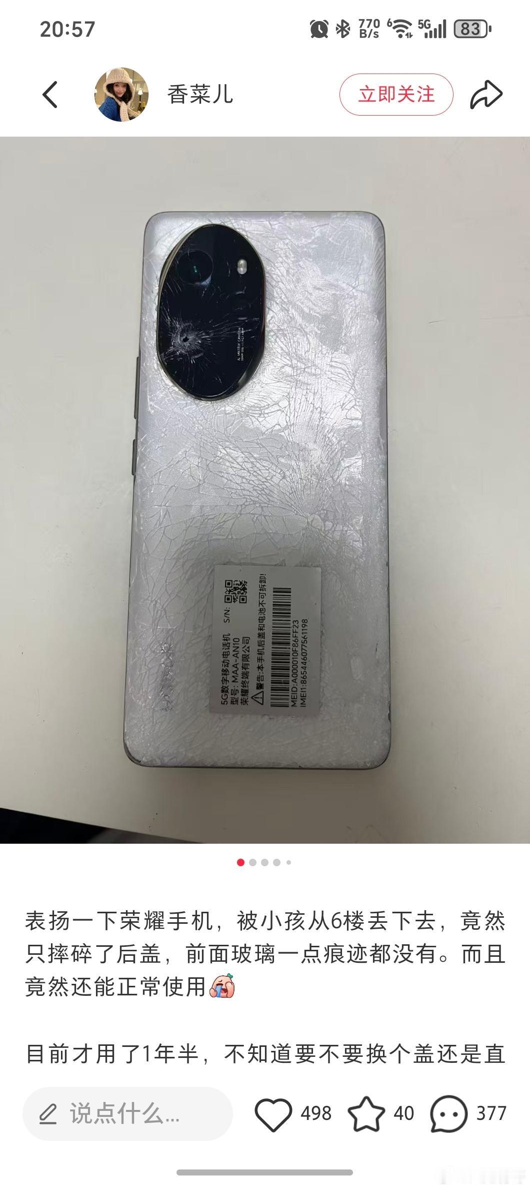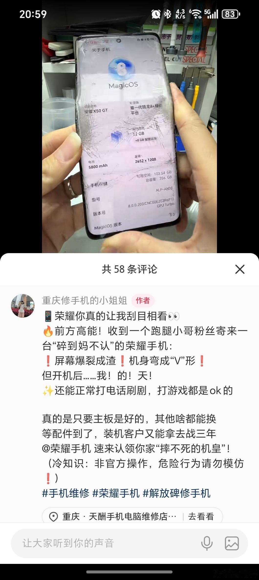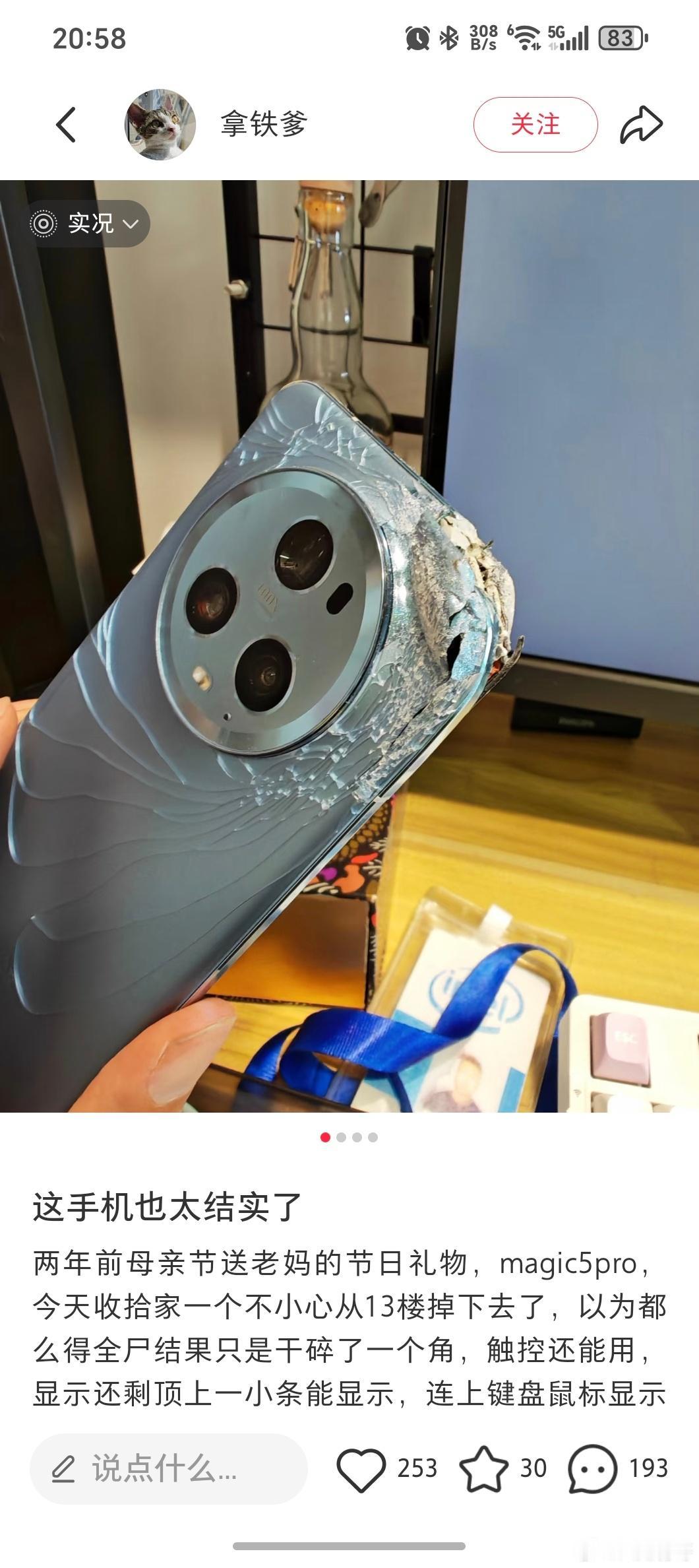 随着国产品牌设计方案,制造工艺提升,手机质量确实是越来越好了,刚刚看到荣耀俱乐部负责人烛龙春哥,分享了一组图文,很多小伙伴反馈了自己耐造的荣耀手机,外屏碎成渣渣,机身变型弯曲,手机还能正常显示,正常开关机,不服不行 畅聊数码新品 数码资讯