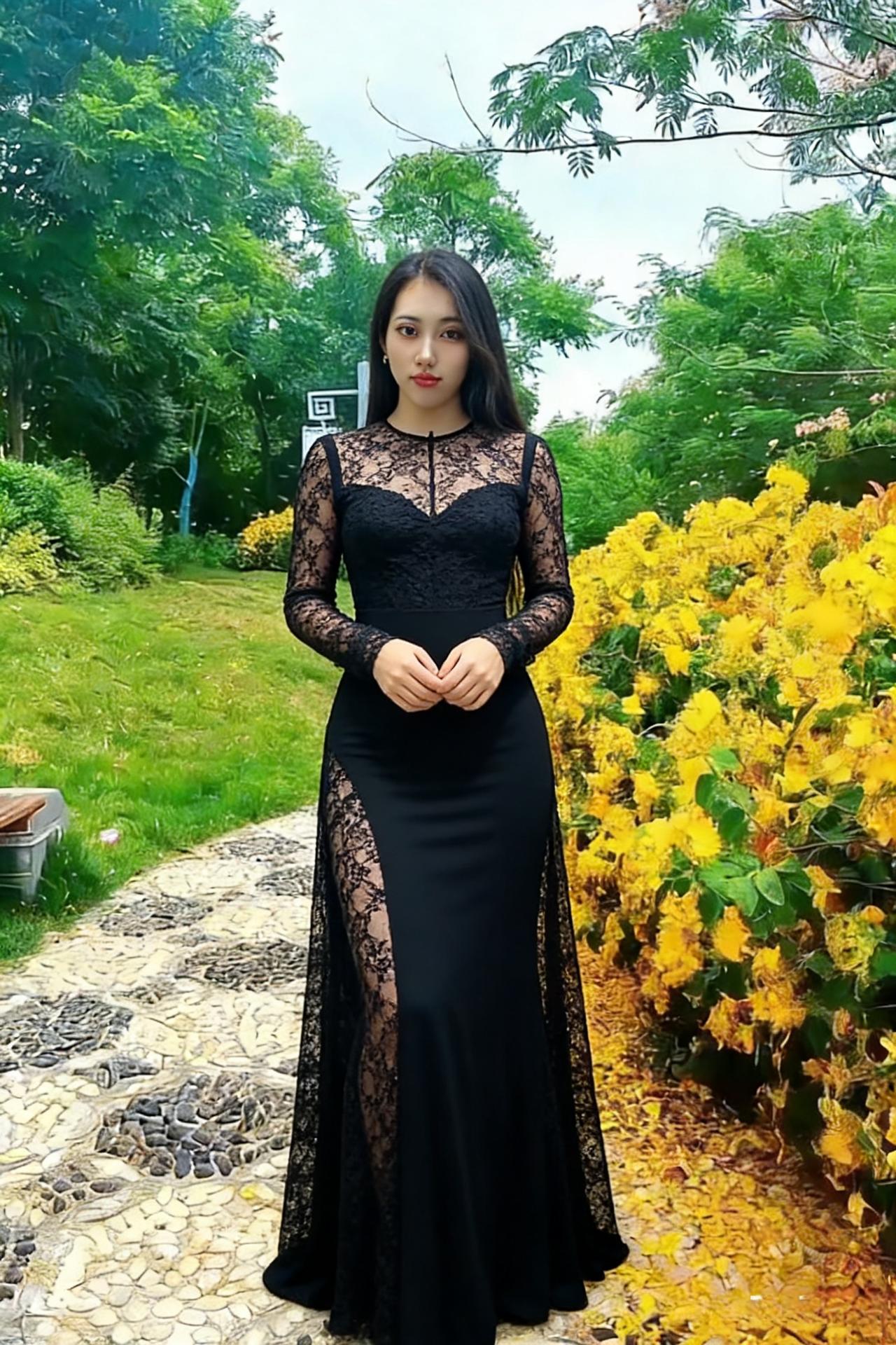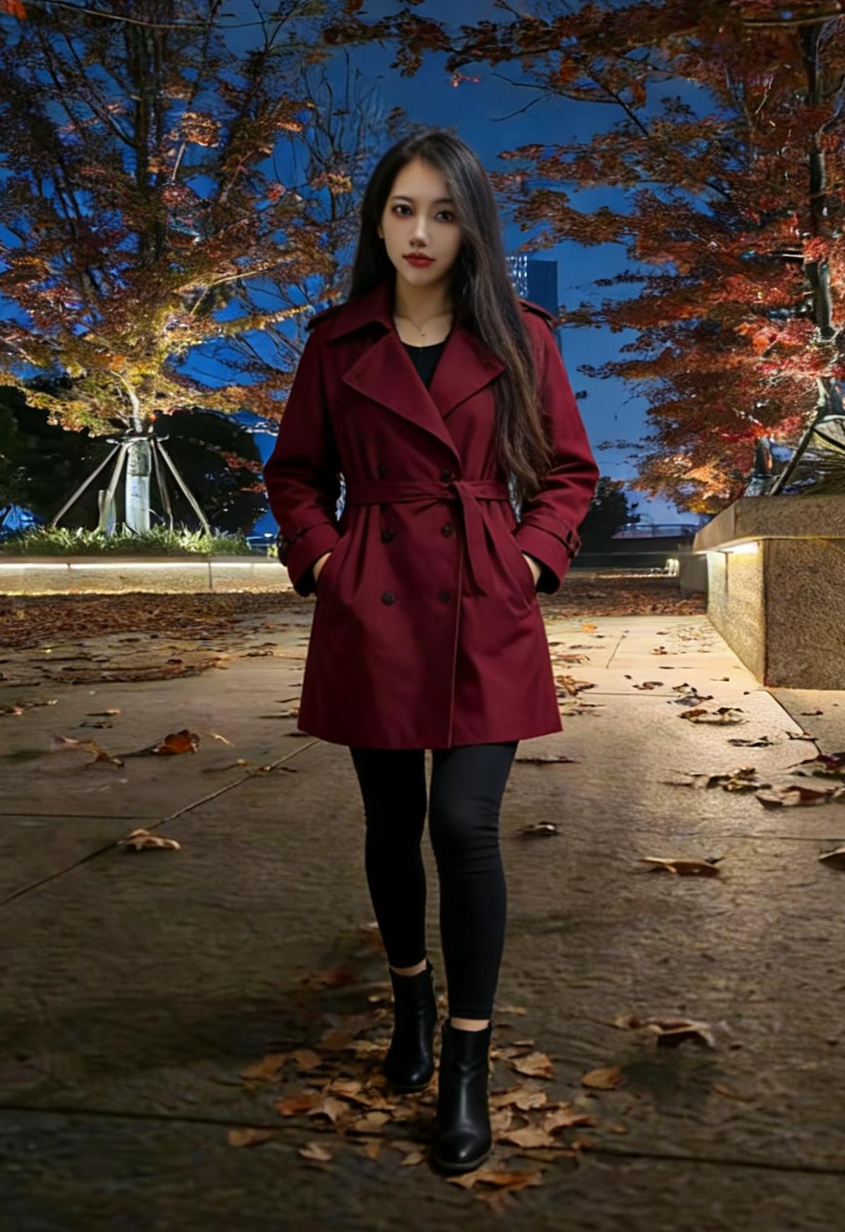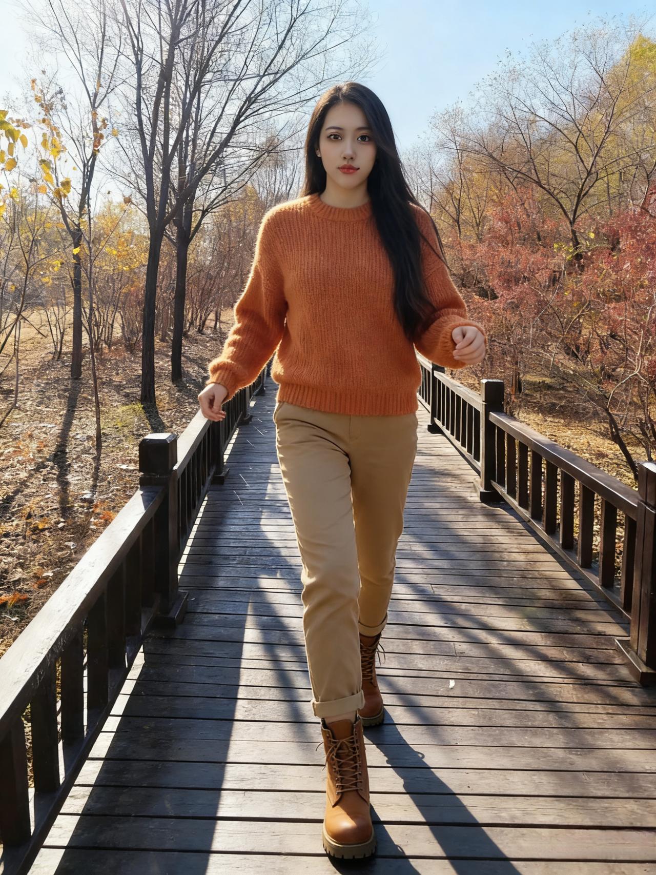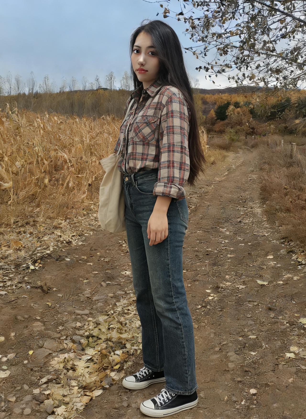 她把夜色裁成贴身的裙 秋风掠过玉米田时 裙角便有了金色的褶皱 ~ 正午的阳光穿过枯藤架 在她垂落的长发上跳荡 像一群不肯安静的星子 ~ 长靴敲着石板路 每一步都踩碎落叶的私语 身后是燃烧的红枫林 ~ 她站在明暗交界的地方 左手是城市的灯火 右手是郊野的风声 ~ 睫毛上沾着微凉的露水 红唇轻启时 有整座秋天的呼吸