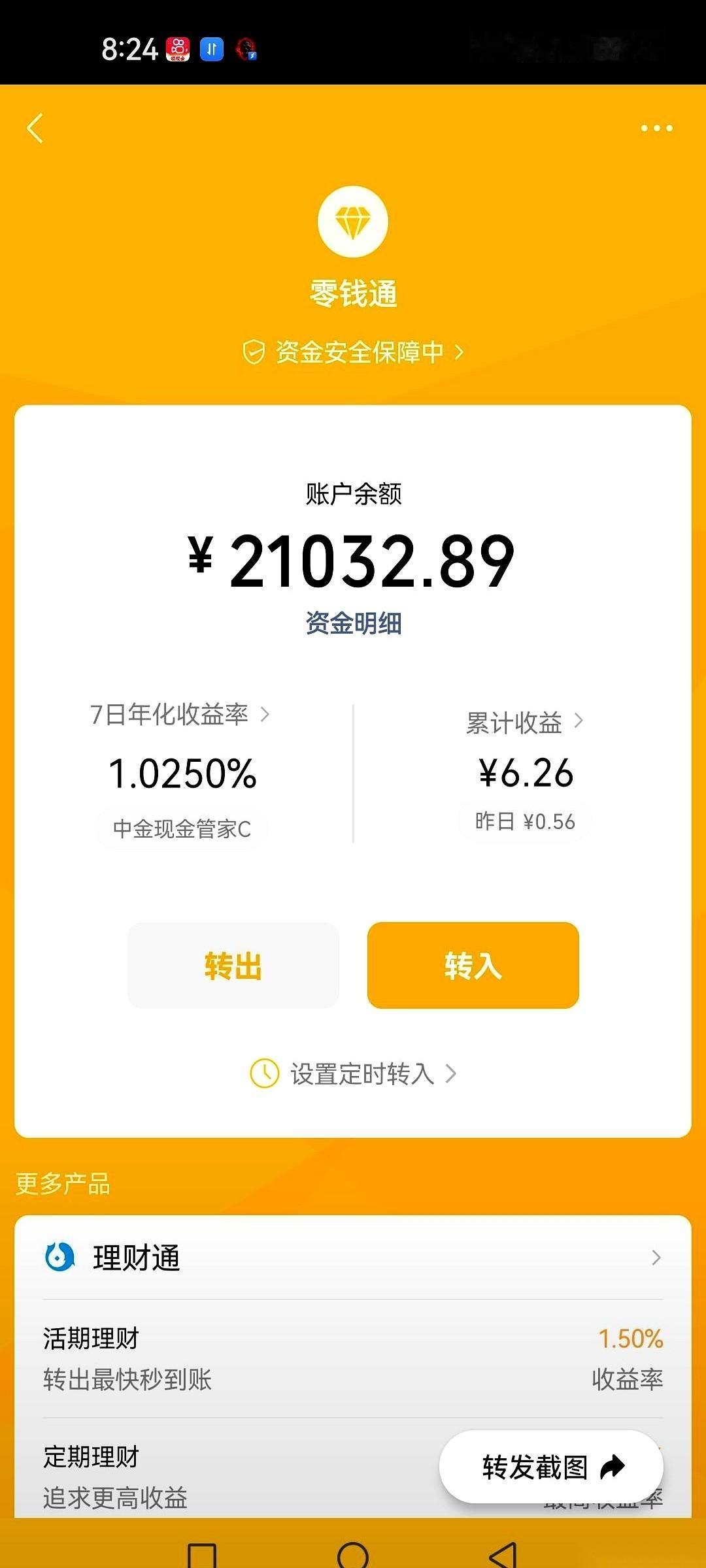 那两万多块钱,躺在我的零钱通里,我每天早上一睁眼就得去看它。 真的,比闹钟都准。 不是看本金还在不在,是看它昨天又给我“生”了多少钱。 就几毛钱。 有时候运气好,一块多。 这点钱,说出来可能有点可笑,但真能让我开心一整天。 像养了一个会下金蛋的电子宠物,每天给你点小惊喜。 这两万块,不多。不是什么巨款。 但那是我自己辛辛苦苦,一点一点从牙缝里省下来的。 以前就傻乎乎放活期,感觉跟把钱扔水里听响没啥区别。 现在,我跟它定了个一年之约。 就放在这,我不动你,你也别偷懒,给我好好“打工”。 我倒要看看,你这一年下来,能不能跑赢银行那死板的利息。 这可能就是成年人最朴素的理财观吧。 我们贪的不是那点利息,我们贪的是那种“我的钱在为我工作”的安全感,是那种看着数字一点点变多,就好像未来也多了一点点确定的幸福。 你们别笑我没出息啊。 成年人的快乐,有时候就这么简单,甚至……有点抠搜。
