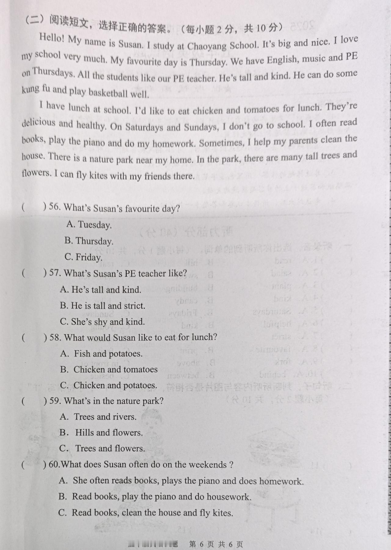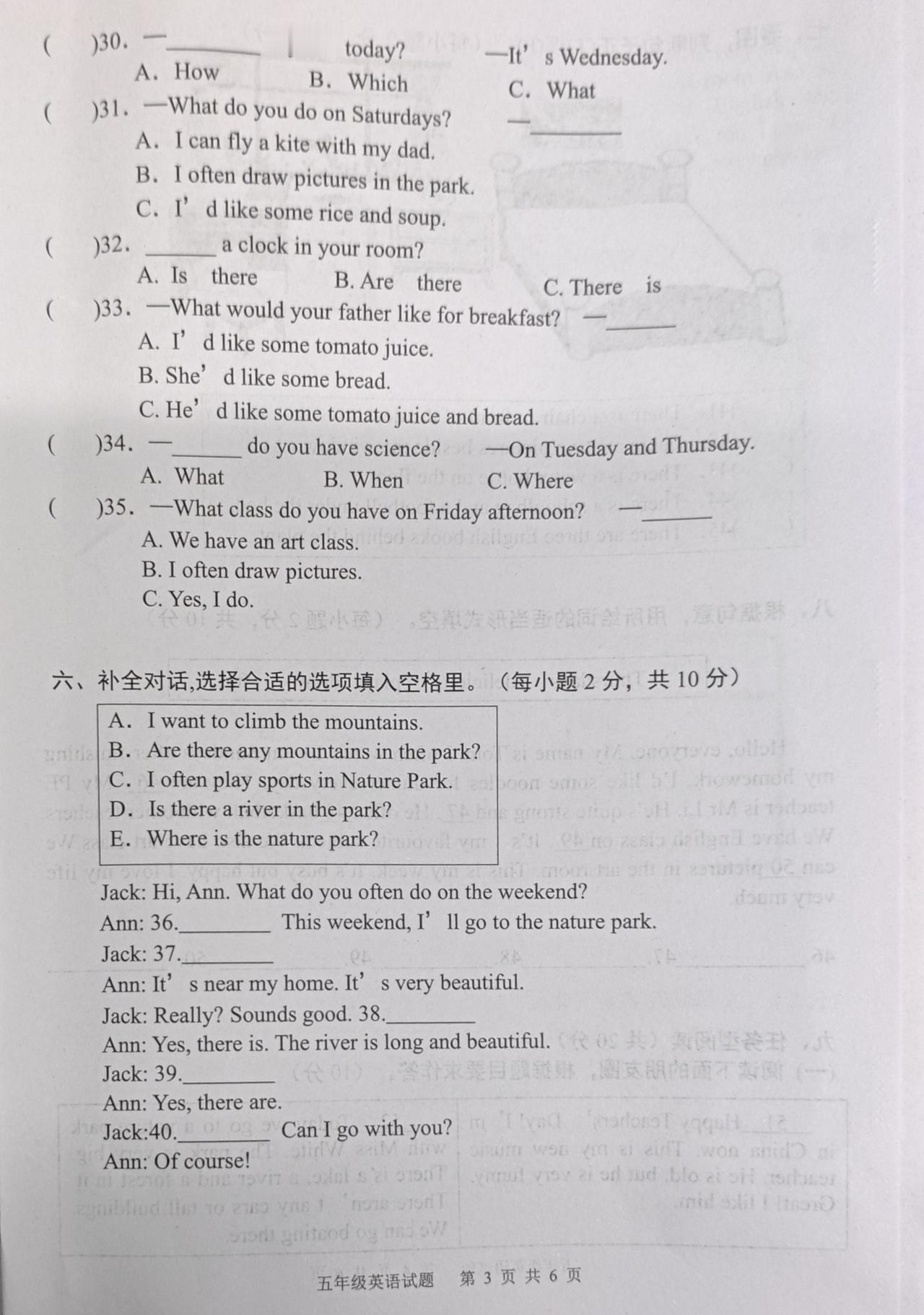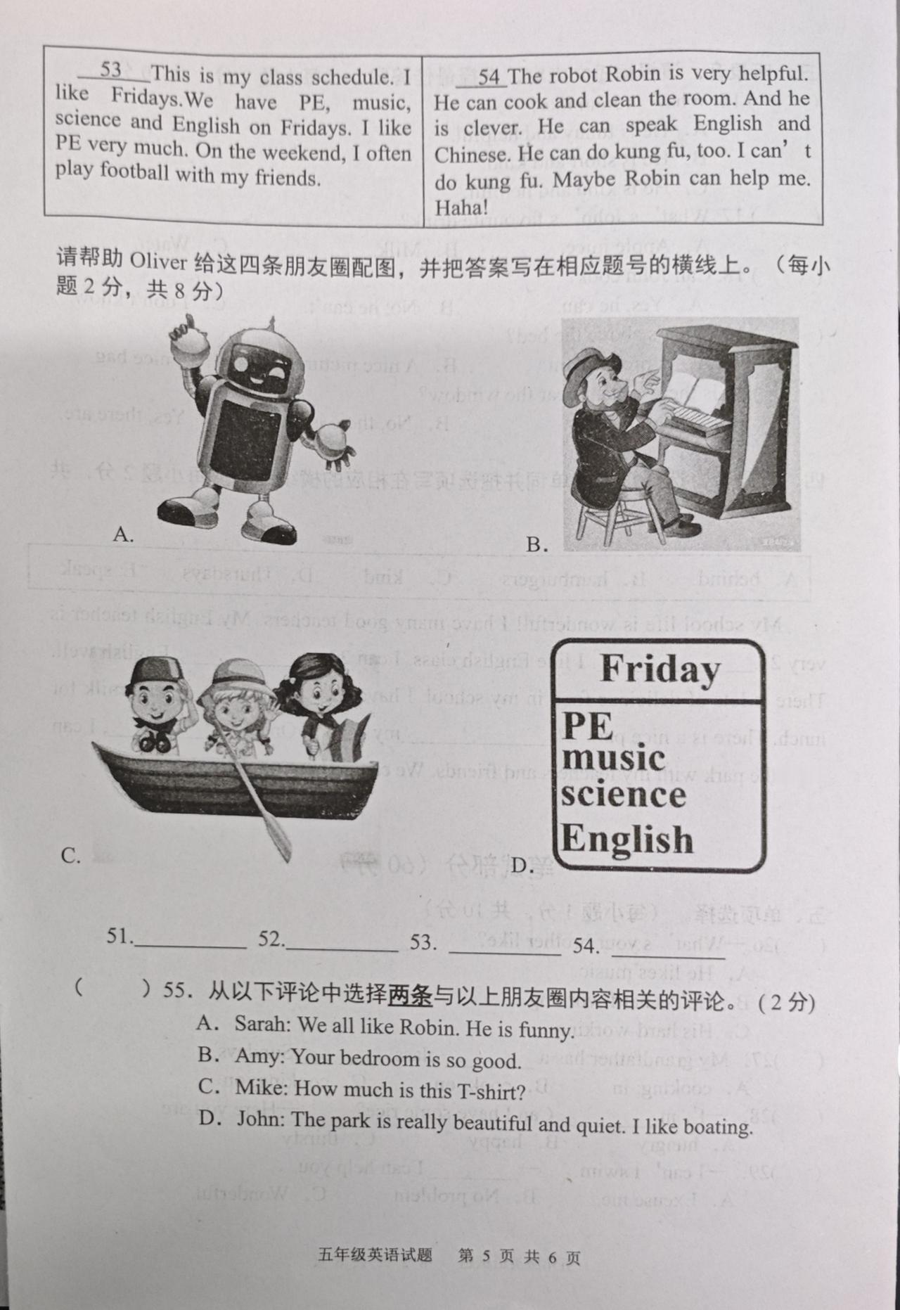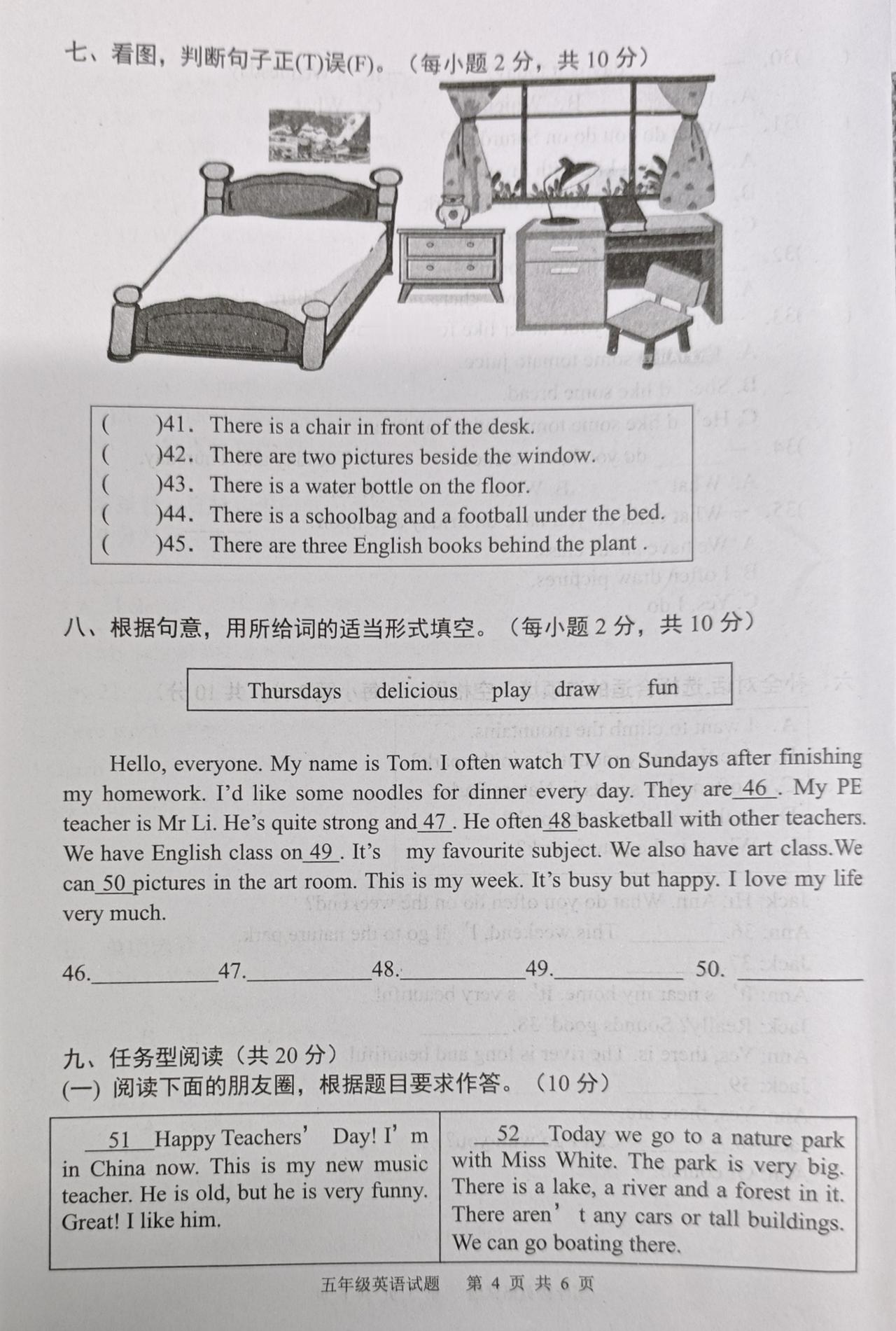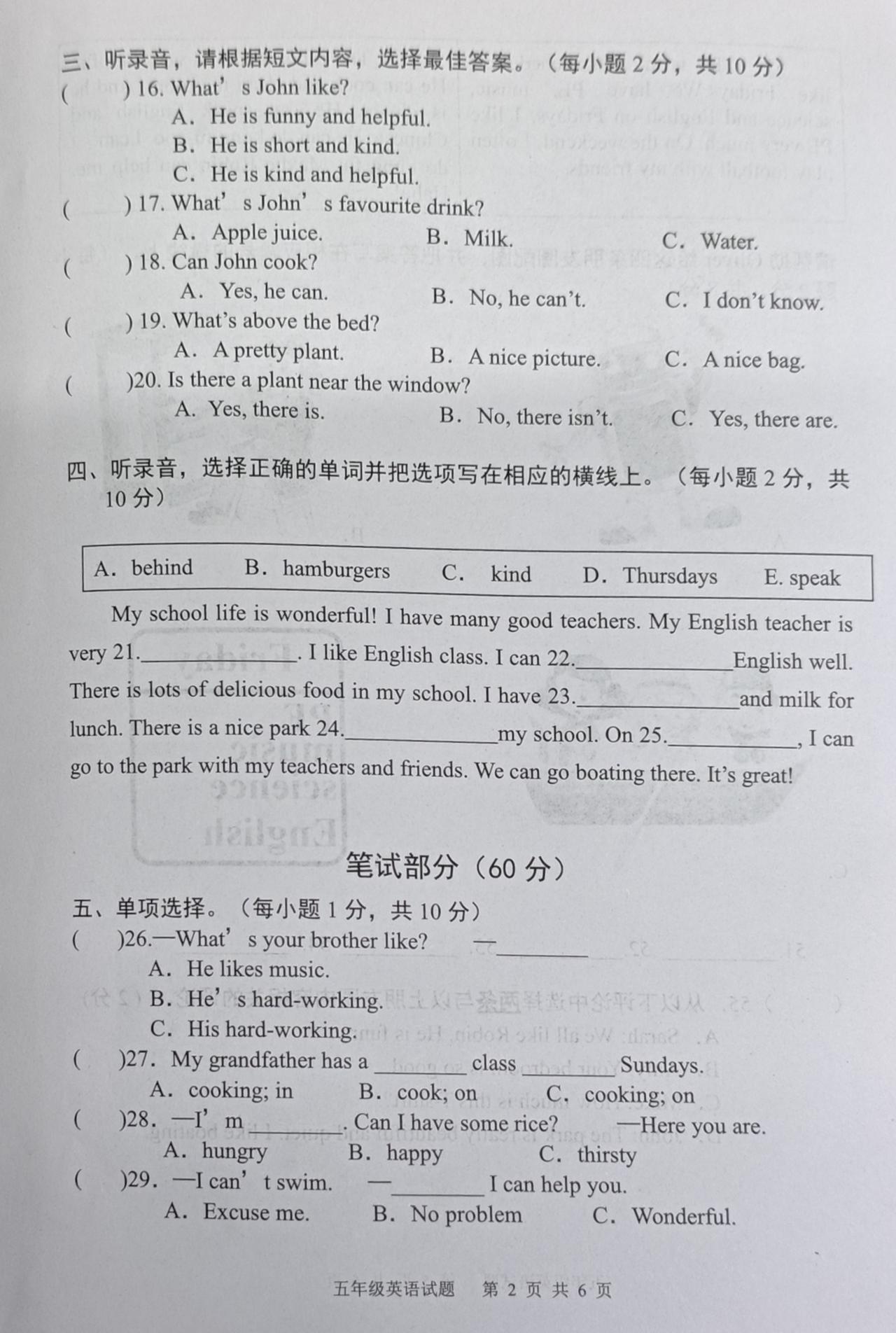 2025—2026学年度上学期期末学业水平质量监测五年级英语试题