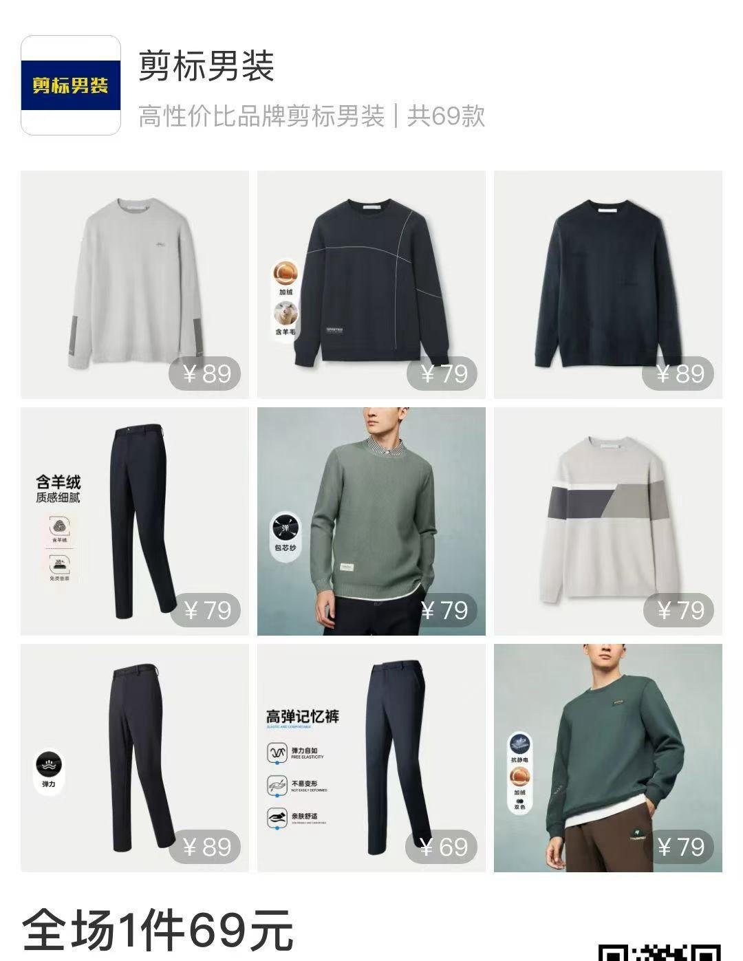 最近一直有海X之家的剪标场,标剪掉了之后价格也剪个腰斩,像下面这些男装都只要69一件,很多大几百上千的羽绒服也只有一两百。