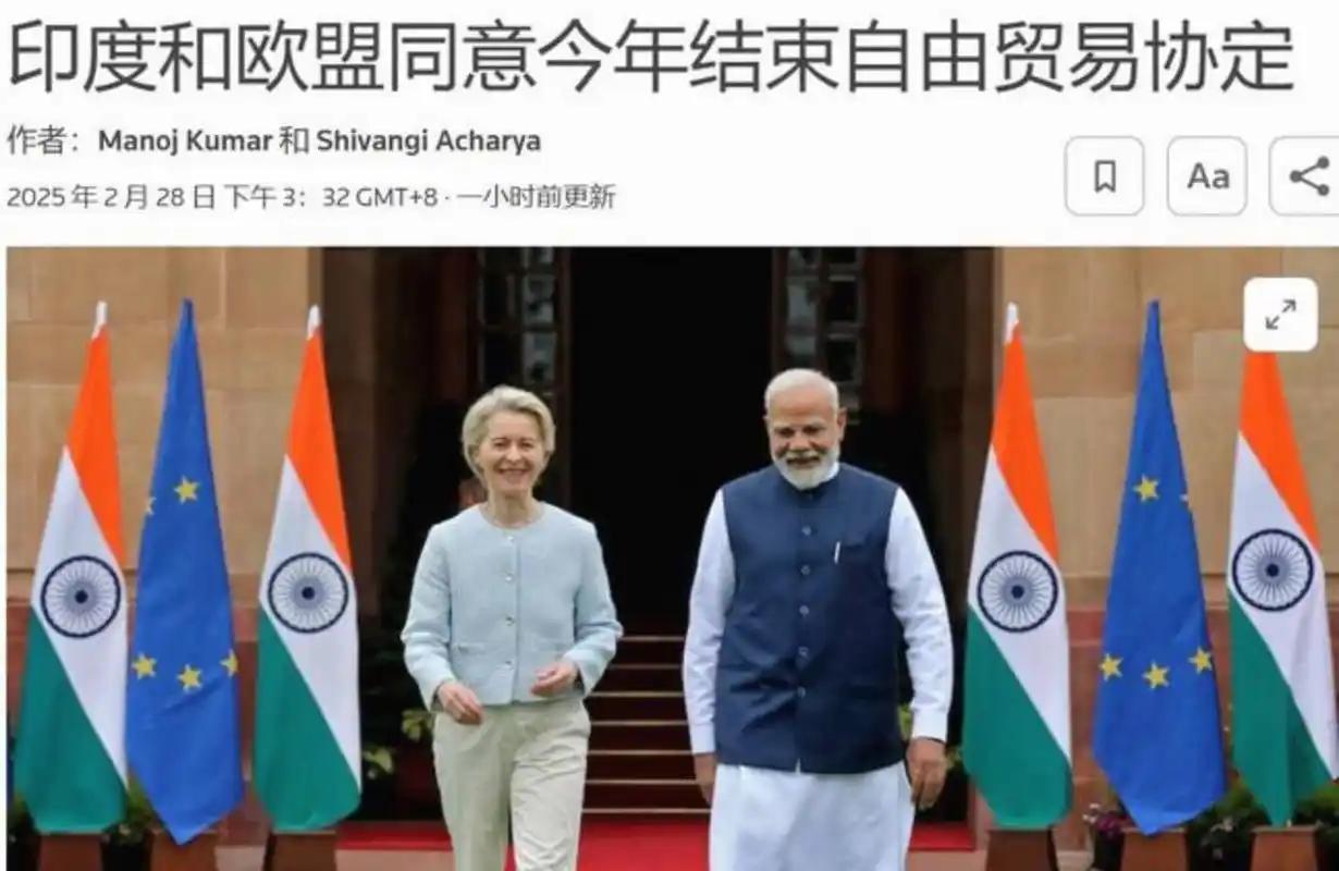 难怪欧洲敢不买俄能源,中方收到一个坏消息:印欧达成自由贸易协定! 2026年初,一则影响深远的事情发生了。1月27号,莫迪宣布经过近二十年断断续续的谈判,印度与欧盟终于敲定了全面的自由贸易协定。 就在同一时间,欧盟重申其目标:彻底切断对俄罗斯石油和天然气的直接依赖。表面看,这两件事似乎各自独立。 但若将它们放在一起观察,就能理解欧洲之所以敢“硬刚”俄能源,是因为它找到了新的战略支点,而这个支点,恰恰绕开了中国。 自2022年俄乌冲突爆发后,欧盟启动了“REPowerEU”计划,目标是在2027年前完全摆脱对俄化石燃料依赖。 但现实是,欧洲短期内难以填补能源缺口,尤其在液化天然气(LNG)和精炼油品方面。于是,一些国家开始转向第三方采购。印度正是在这个窗口期迅速崛起为关键中间商。 数据显示,2023到2025年间,印度从俄罗斯进口原油量增长超过400%,成为俄油最大买家之一。而这些原油经印度炼厂加工后,以成品油形式出口至欧洲,既规避了西方对俄能源的直接制裁,又满足了欧洲的能源需求。 中国也曾具备类似角色潜力。中国同样是俄能源的重要买家,且拥有庞大的炼化产能和成熟的出口体系。理论上,中国完全可以像印度一样,将俄原油加工后再销往欧洲。但看来欧洲这次选择了印度。 欧洲的选择绝非偶然。印欧自贸协定的落地,给双方能源贸易套上了“安全锁”。根据协定内容,印度纺织品、珠宝等优势产业可获得欧盟更广阔市场。 作为回报,欧盟企业能拿到印度金融服务、海运物流等领域的特权准入资格。这种双向让利的合作框架,让能源贸易成为自然延伸的合作方向。 印度早已提前筑牢合作基础。信实工业旗下的贾姆讷格尔炼化基地,是全球加工能力最强的炼油综合体,每日可处理约一百二十万桶原油。 据大宗商品数据提供商克普勒统计,2025年8月,印度对欧柴油出口量同比激增137%,日均出口量突破24.2万桶,创下历史峰值。这些成品油大多来自俄罗斯原油加工,刚好契合欧洲能源储备需求。 欧盟自身的能源困境也推着它向印度靠拢。荷兰Pernis等核心炼油厂的非计划性检修,导致欧洲本土产能缺口扩大。 叠加欧盟2026年1月升级对俄产燃料贸易限制的政策,区域内买家不得不加速开拓多元化供应渠道。印度恰好接住了这波需求红利。 碳边境税争议的解决成为关键推手。欧盟碳边境税于2026年1月1日正式生效,对钢铁、铝等高碳排放进口产品征收额外费用。 印度曾强烈反对这一政策,双方就该议题僵持许久。最终在2026年1月25日的谈判中,双方达成共识,为协定签署扫清障碍。这一妥协让印度成品油出口欧洲的成本优势得以保留。 中国缺席这一角色,有多重现实因素。 中国炼化产业以满足国内需求为主,出口配额管控相对严格。大规模向欧洲出口成品油,可能会影响国内能源供应稳定性,这是中国必须考量的底线。 中欧能源贸易的定位也与印欧不同。中国与俄罗斯的能源合作基于长期协议,以原油、天然气直接进口为主,加工出口并非主要方向。 欧洲对中国的能源合作需求,更多集中在新能源领域,而非传统成品油贸易。 印欧合作还暗藏战略协同考量。欧盟正寻求减少对美国的依赖,印度则想降低对俄罗斯军事装备的依赖。 双方通过自贸协定深化经济绑定,能源贸易成为重要纽带。欧盟借助印度摆脱俄能源,印度则靠欧洲市场提升炼油产业话语权。 数据能直观体现这一合作的影响力。2024年欧印双边货物贸易额已达1200亿欧元,服务贸易额额外达到600亿欧元。 冯德莱恩明确表示,随着协定落地,欧盟对印度的出口额预计将实现翻倍增长。能源贸易的扩容,会进一步推高这一数值。 印度也在主动巩固中间商地位。尽管2025年2月印度从俄罗斯进口原油量同比下降15%,但整体仍维持高位。 印度炼油企业采取多元化采购策略,货源覆盖中东、美国等地区,既降低单一依赖风险,又能灵活调配产能供应欧洲。 对中国而言,这一格局变化带来双重警示。一方面,全球能源贸易路线正在重构,印度凭借灵活的贸易策略和与欧洲的政策绑定,抢占了中间环节的先机。 另一方面,中欧贸易合作需进一步拓展新领域,避免在传统能源贸易中被边缘化。 欧洲敢硬刚俄能源,本质是找到了替代方案的闭环。印欧自贸协定让能源、贸易、战略需求形成共振。 中国虽有产能潜力,但基于自身能源安全和合作定位,未能成为欧洲的选择。未来全球能源贸易的博弈,将更多围绕这类区域合作协定展开,中国需提前布局应对。