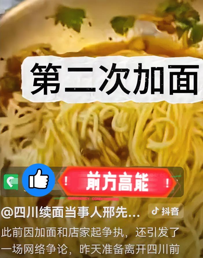 四川乐山续面事件! 当事大学生又发视频了! ​仍旧是找了家免费续面的面馆,仍旧是