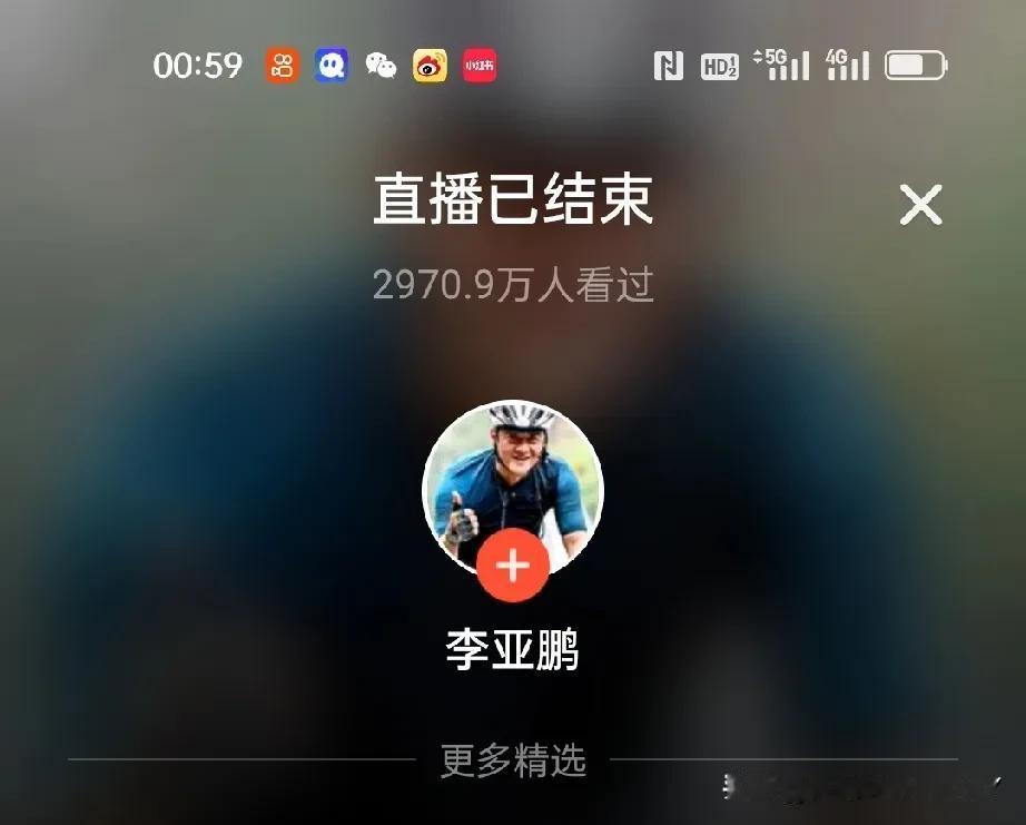 李亚鹏2026年1月30日晚上7点开始直播,连续直播6个小时,人共有2970万人
