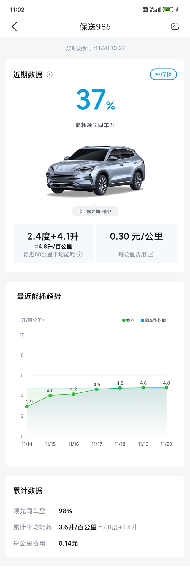 近段专门让油机工作一下,赶在首保的时候油机跑满1000公里,加上空调开二十六七度,能耗一下就上去了