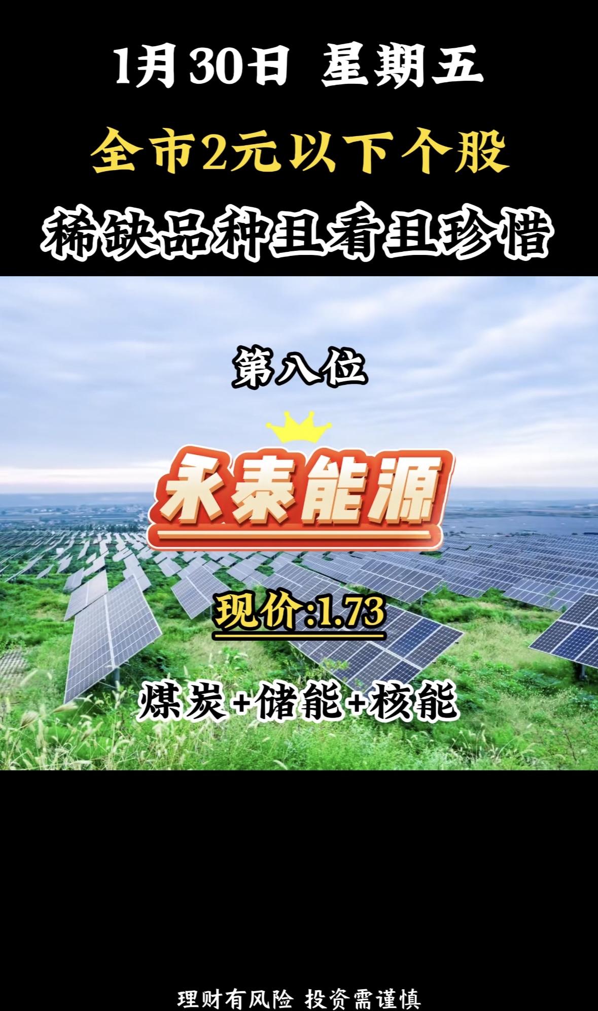 “1月30日,2元以下低价股梳理 永泰能源现价1.73元,投资需谨慎!”🌞💰 低价稀缺股荣盛发展,涉足特色小镇与地产领域,投资机遇与风险并存,理性决策为上。