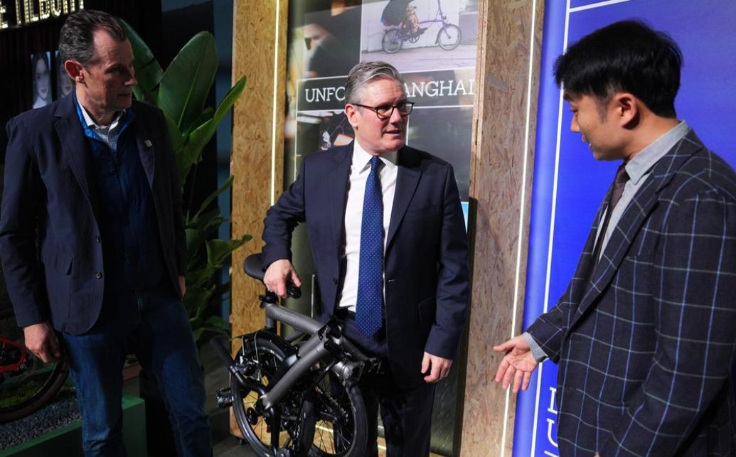 1月30日英国首相参观完豫园后又去逛商场,斯塔默看到什么都很好奇,偶尔还上手体验一下;比如他走到一个玩偶面前,走过去用手摸了摸。 这个玩偶可不是普通玩偶,而是十分火的拉布布,首相先生称自己也收藏了一个,说不定是送给妻子或者女儿的礼物,看来他也是紧跟潮流的一个人。 他走到卖自行车的地方,还单手提起一辆折叠自行车与工作人员交流;还到了卖化妆品的地方,就是不知道有没有购买一套化妆品带回国送给首相夫人? 上海商场的商品种类齐全,可以说是没有买不到的,只有想不到的,斯塔默在上海逛商场,简直就是最好的“导购”。