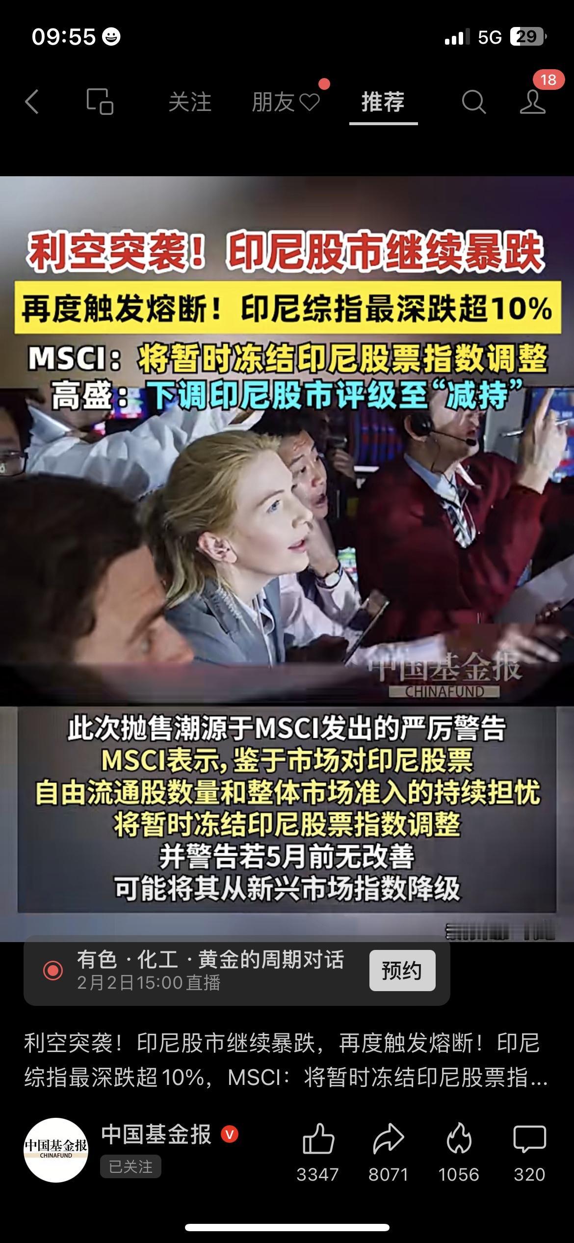 印尼股市直接熔断!最深跌超10%,外资要跑78亿! MSCI警告要把印尼从新兴市场降级,高盛直接下调评级到“减持”,外资疯狂出逃,股市直接触发熔断! 咱们普通人别凑热闹,投新兴市场ETF要慎之又慎! 你会配置成熟市场ETF,还是继续持有新兴市场? 财经热点 印尼股市 ETF理财 市场有风险,投资需谨慎