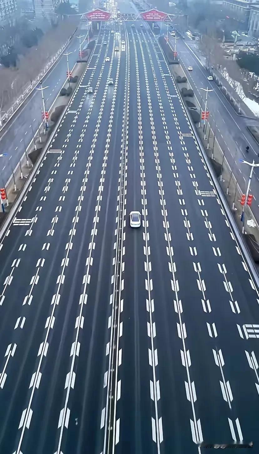 航拍济南经十路,那密密麻麻的鱼骨线真是让人头大。这条经十路,1941 年时才 16 米宽,叫兴亚大路,如今都扩到 60 米宽、90 公里长,双向十四车道,每天 50 多万辆车跑。 以前红绿灯少,看着挺舒服,现在早晚高峰堵得厉害。这鱼骨线其实是纵向减速线,施划在燕山立交桥东至洪山路路口约 1000 米范围,这路段有坡度和弯道,是事故高发区,想让司机下意识减速。可这标线看着实在太乱,有人觉得土。不过也能理解济南为缓解拥堵做的努力,只是这设计嘛,见仁见智咯。