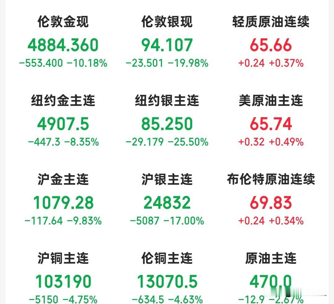 又是好久没更新了。 一觉醒来,发现黄金白银整体大幅回调。 黄金跌破4900美元,白银跌了20%。这个幅度确实有点大。 投资永远都是这样,如果是炒作情绪。就要遵循一个原则:当大多数人都看好要往里冲,同时上涨趋势出现分歧的时候,就要注意风险了。 周四黄金白银出现回调拉升,这个时候就要注意市场已经有分歧,主力资金在止盈,结果周五直接就跌停封板,周四这时候就不能往里冲了,而是止盈。 声明:个人观点,不构成任何投资建议,投资有风险,入市需谨慎。