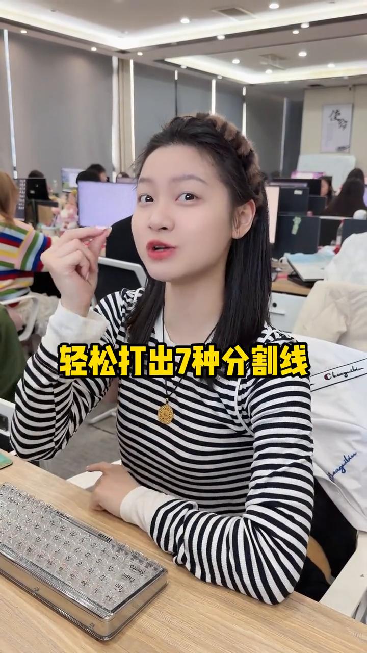 高手教你打出7种分隔线,我不允许你还不知道。 把这个分割线给我改成虚线。好啦,不对,是双直线。可以了,不对,我说的是此豆腐。高手教你轻松打出7种分割线,安排。 ·1、三个【***】回车,是小虚线。 ·2、三个【+++】回车,是大虚线。 ·3、三个【&&&】回车,是条形线。 ·4、三个【~~】回车,是波浪线。 ·5、三个【】回车,是隔行线。 ·6、三个【=】回车,是双直线。 ·7、三个【一】回车,是单直线。 怎么样,随便你挑。