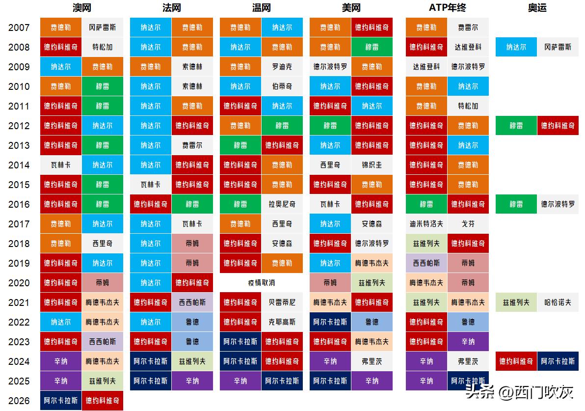 【看吧!二十年间了,这满眼的红底色从当初的天蓝、橘红和翠绿到如今的深蓝紫红!】 在此之前,如果没记错的话,德约科维奇对辛纳已经五连败了! 当所有人都不看好他的时候,德约科维奇用五盘逆转击败了那座矗立在面前的高山。 辛纳以6-3拿下首盘,德约以6-3扳回一盘,辛纳以6-4再下一城,德约同样以6-4再扳一盘。决胜盘,德约科维奇以6-4胜出。 相比与纳达尔的那场接近六个小时的较量,这次时间更短,但艰难程度却不低,毕竟,德约科维奇已经39岁了!从他打进职业生涯第一次大满贯男单决赛算起,已经20年了!