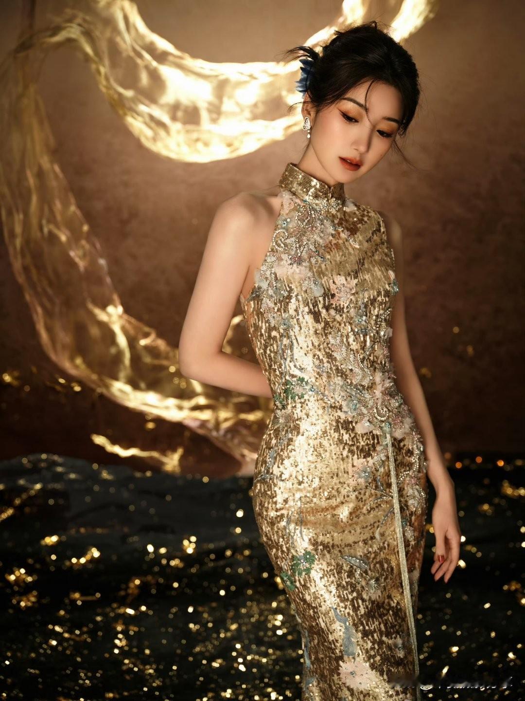 温柔甜美的粉色连衣裙,搭配精致耳环,散发优雅气质。