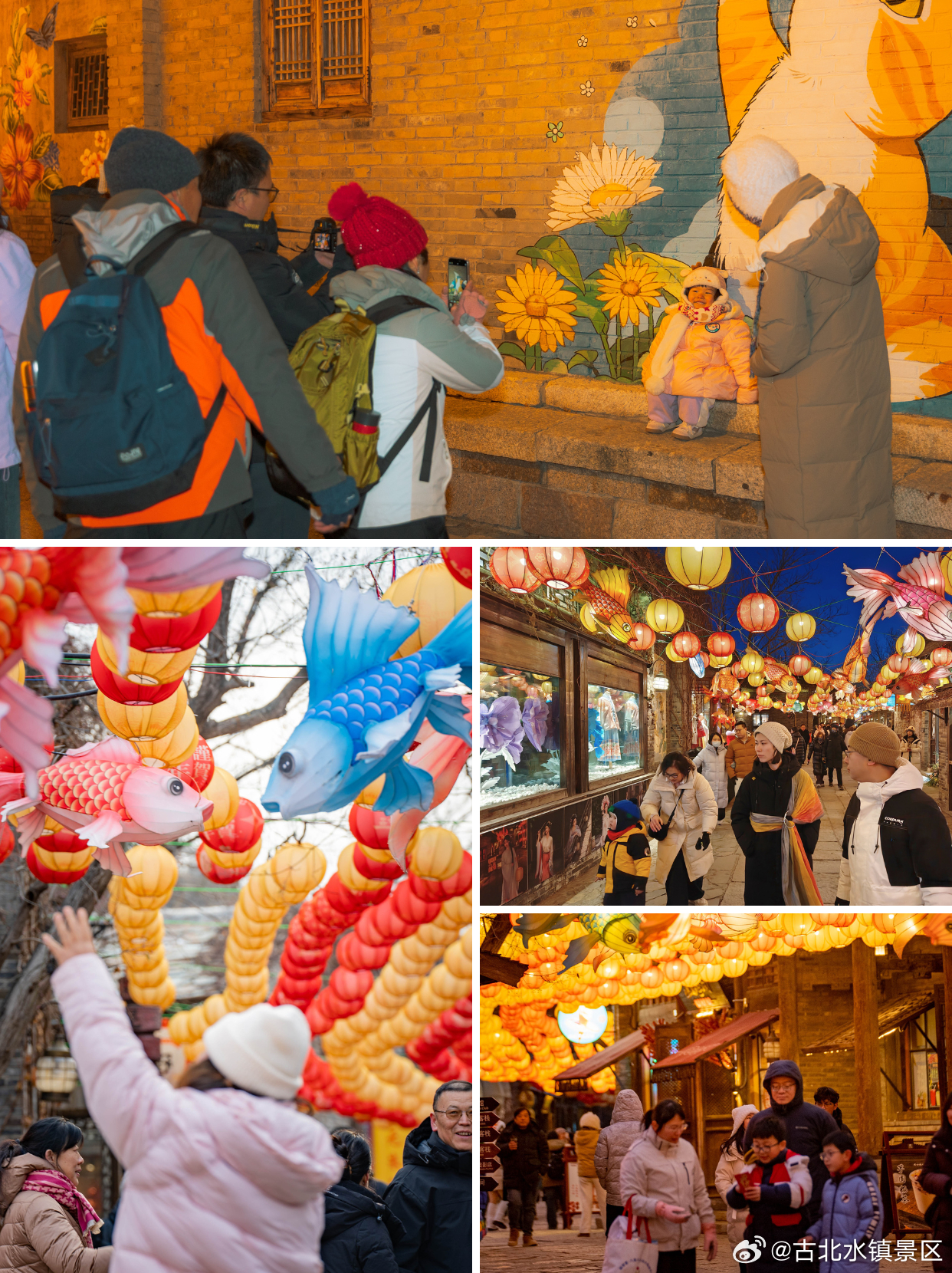 🏮 长城千灯会|暮色里的童话世界白天畅玩冰雪,暮色一降,建议直奔千灯会,暖光漫过青砖黛瓦,整座水镇瞬间被温柔包裹🌙🦋 童话光影:南天门巷道两侧,花朵、白驹、蝴蝶造型花灯灵动又梦幻,瞬间戳中小朋友的好奇心,驻足细看、伸手轻触,脚步根本挪不动🐠 金鱼学堂:抬头是游弋的仿真金鱼灯笼,宛如闯入海底童话;街上的建昆堂灯笼铺可体验DIY专属花灯——扎架、糊布、绘图,提着它夜游千灯会,仪式感与年味一键GET👏