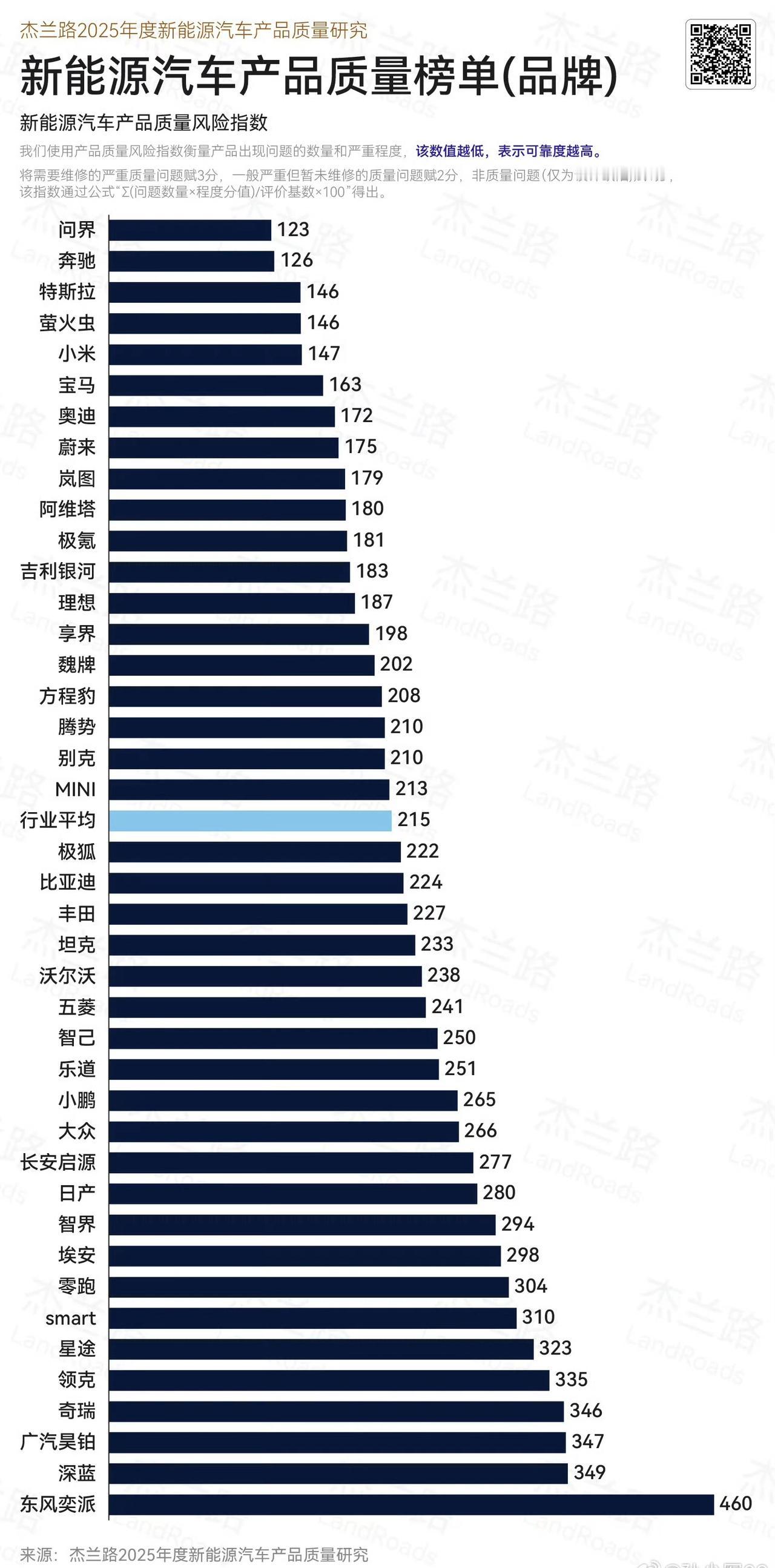 国内一机构做了一个新能源产品质量的排行榜,问界汽车以绝对的优势领先于大部分车企,就连奔驰也被甩在了身后!单以产品质量来说,新能源车企的用料确实足很多,但是那些百年老牌车企的优势在哪呢?我觉得不是技术创新的问题,也不是产品用料的问题,而是技术调校的问题。就以“筷子悬架”这个问题来说,为什么很多老牌车企用上之后质量问题挺少的,而一些年轻品牌的车型用上之后小问题不断?这就涉及了技术调校的问题。所以,国产车企不应该只注重用料问题,还是要更注重技术调校的问题。