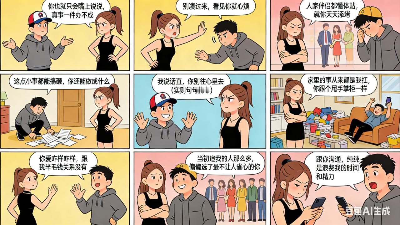夫妻之间最最伤人的九句话: 1、要你有什么用。 2、我当初真是瞎了眼才选你。 3、这事跟你说了你也不懂。 4、随便你怎么想,我懒得解释。 5、钱都是我挣的,你少指手画脚。 6、就你这点本事,还敢跟我提要求。 7、要不是为了孩子,我早不将就了。 8、你做的这些,在我眼里一文不值。 9、我的事,轮不到你管。 夫妻情感法则 夫妻间经典语录