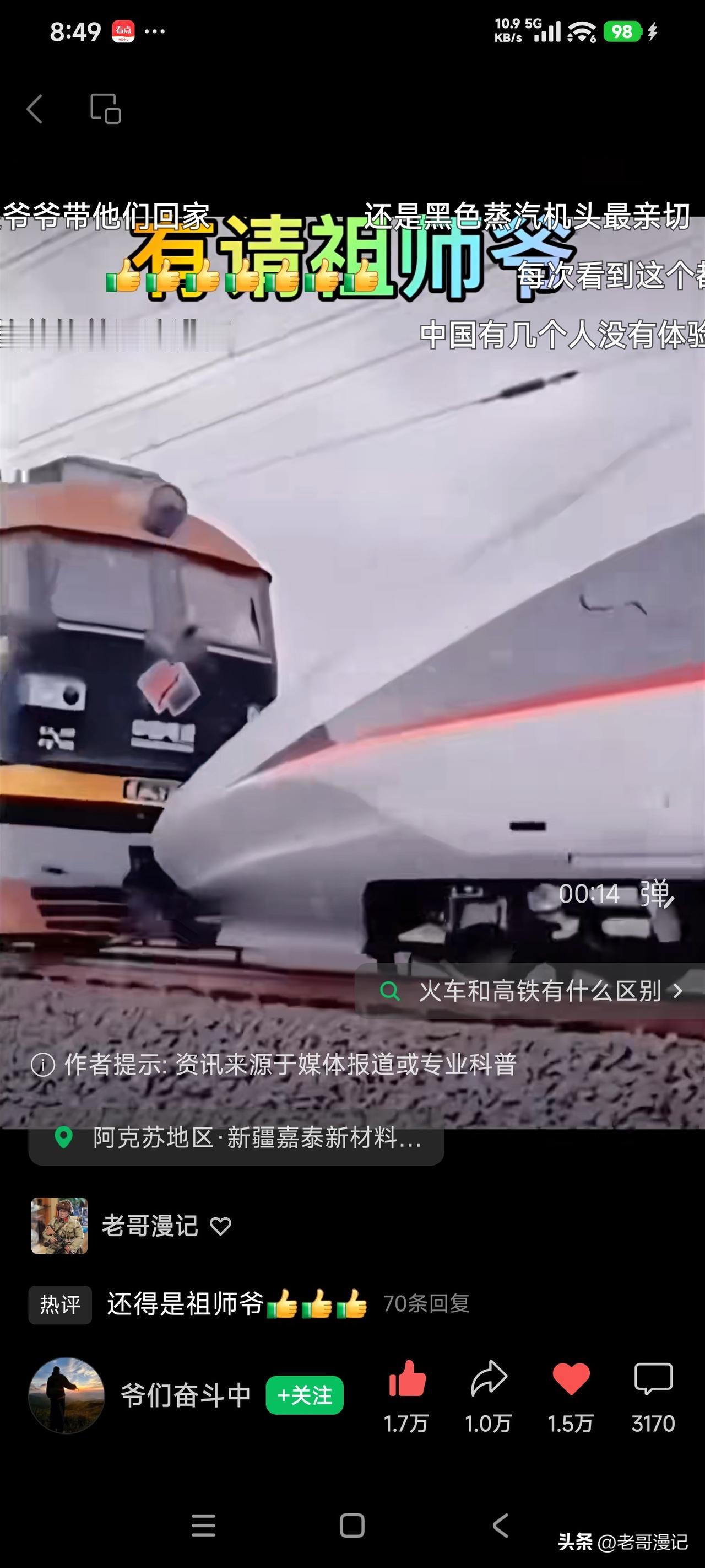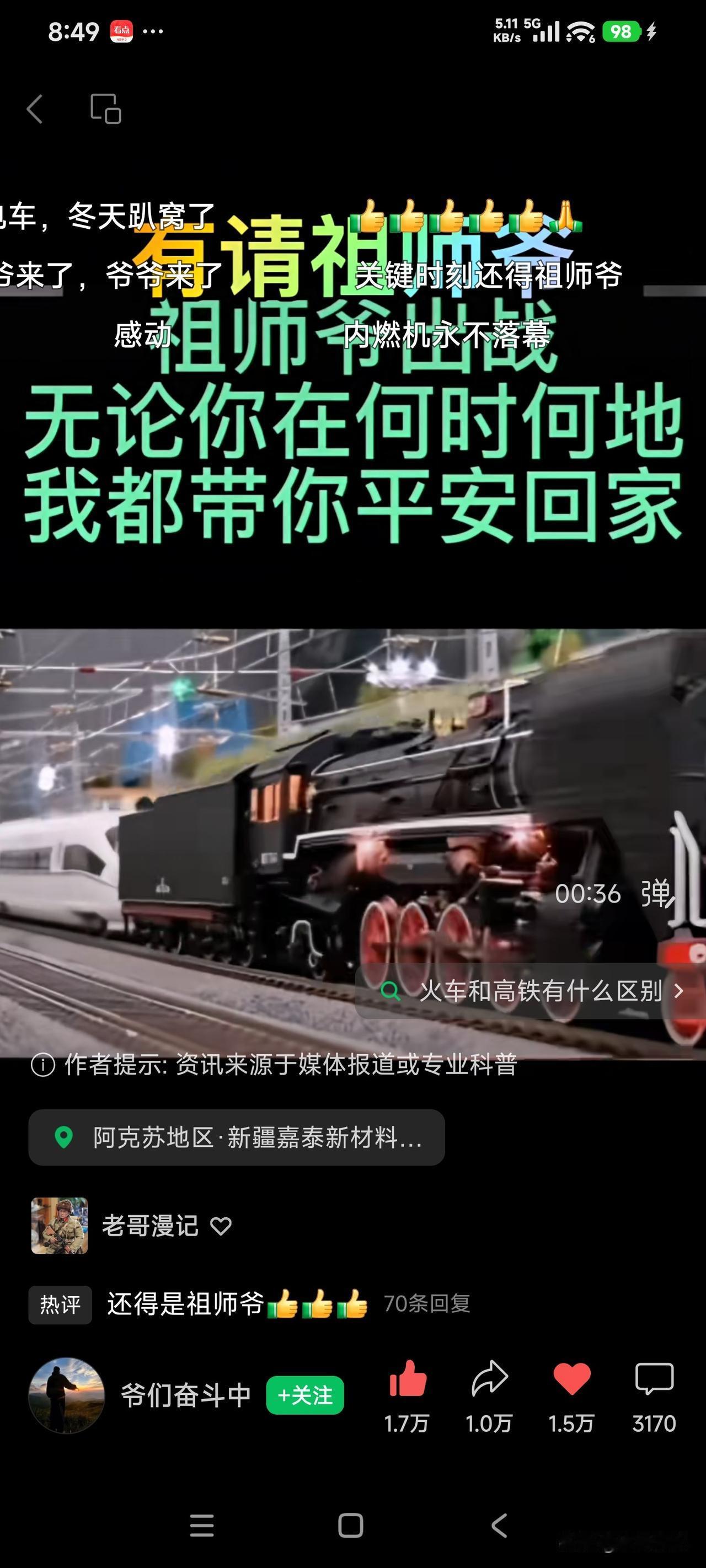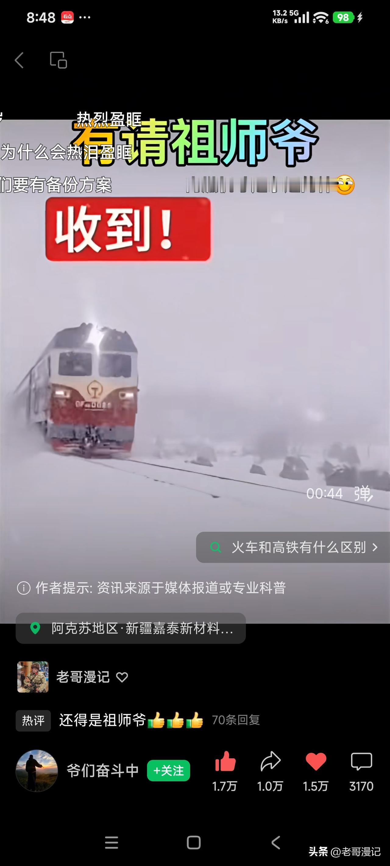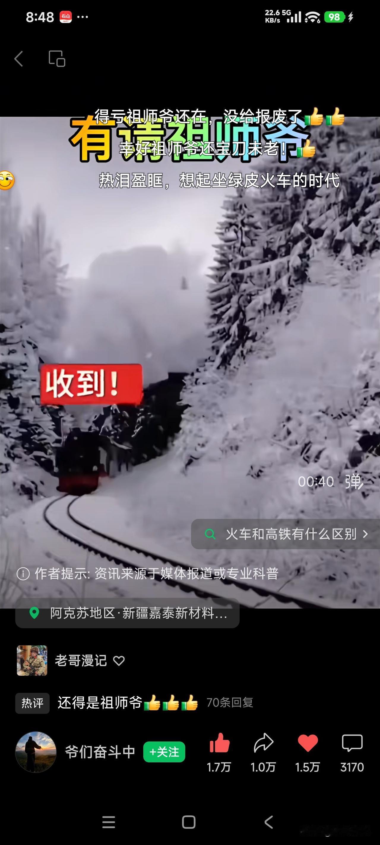 冰雪中还得看我老东风,老前进。关键时刻,老内燃,老蒸汽方显老英雄本色。老哥哥不能走。毛泽东号来了,周恩来号来了,春节送你回家。这反应了什么,科技在发达,老一辈的东西赶不上时代,但不一定淘汰,不代表没用。遇上事,还是老一辈去抗,为新一代人开路!这就是家有一老如有一宝。