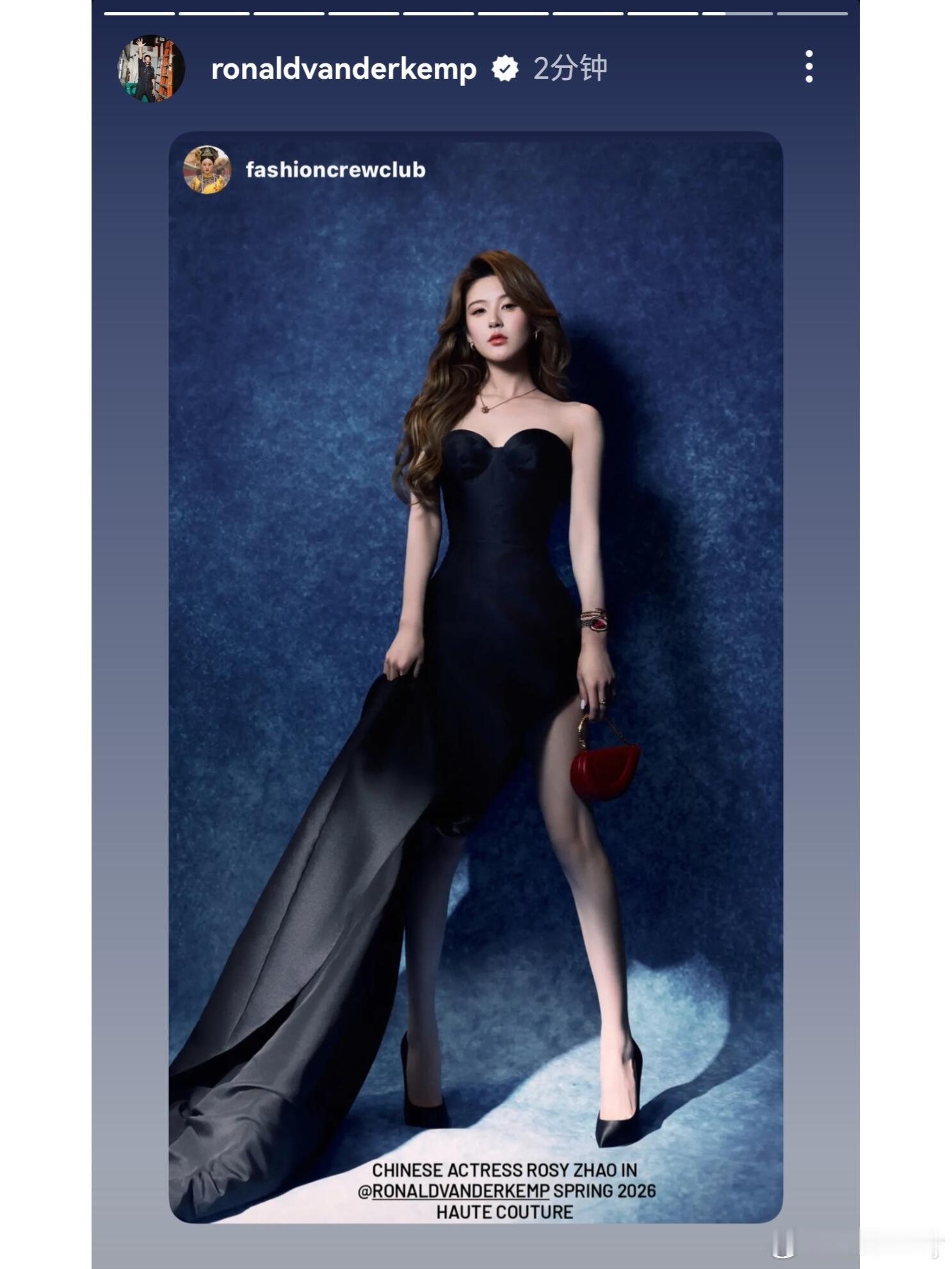 全球首穿,RVDK火速认领赵露思黑裙高定!.赵露思身穿Ronald van der Kemp 2026春夏高定出席线下珠宝活动,本月27号在巴黎发布的高定新款,赵露思就穿上了,她也是国内首位上身2026春夏高定的女明星。